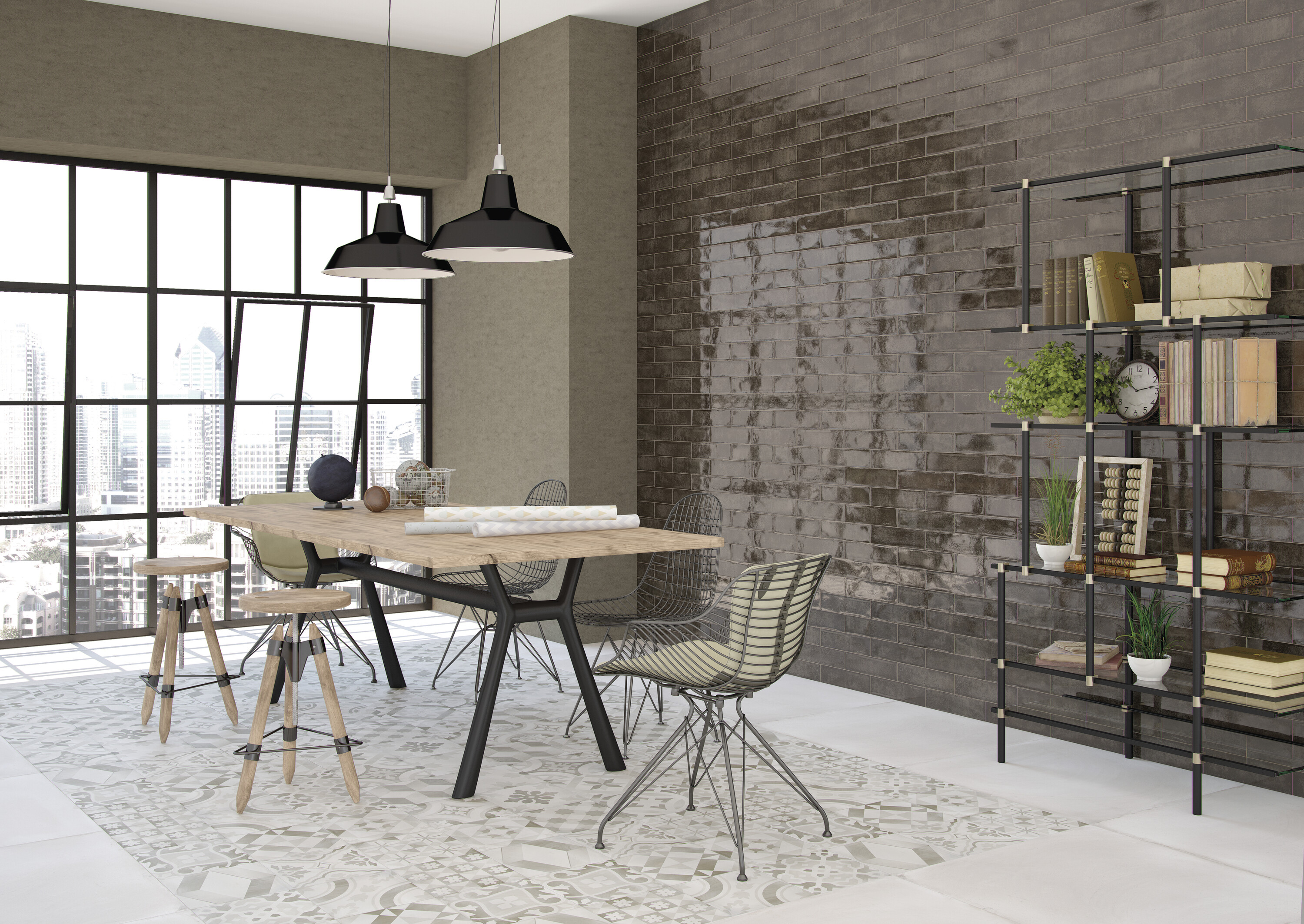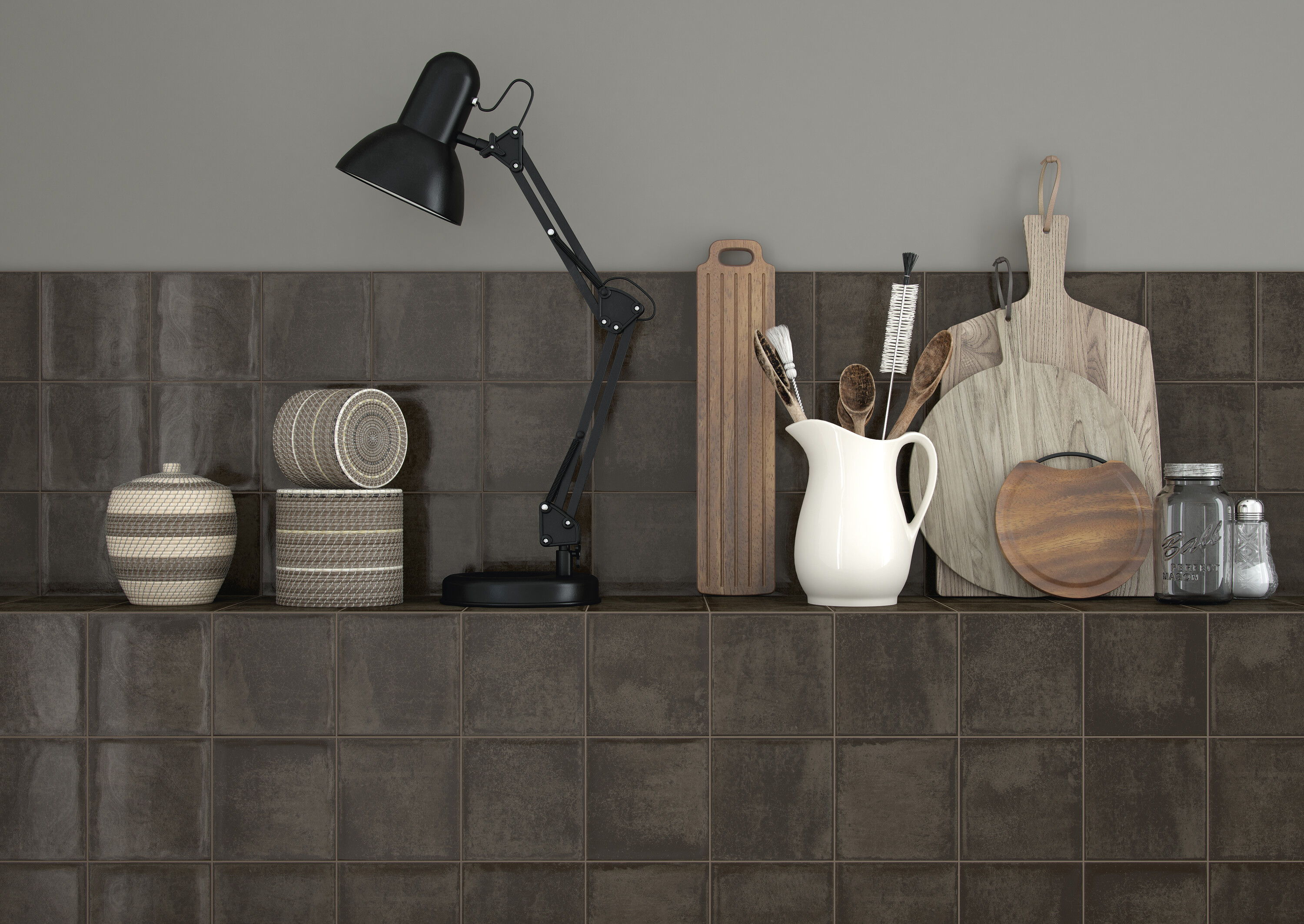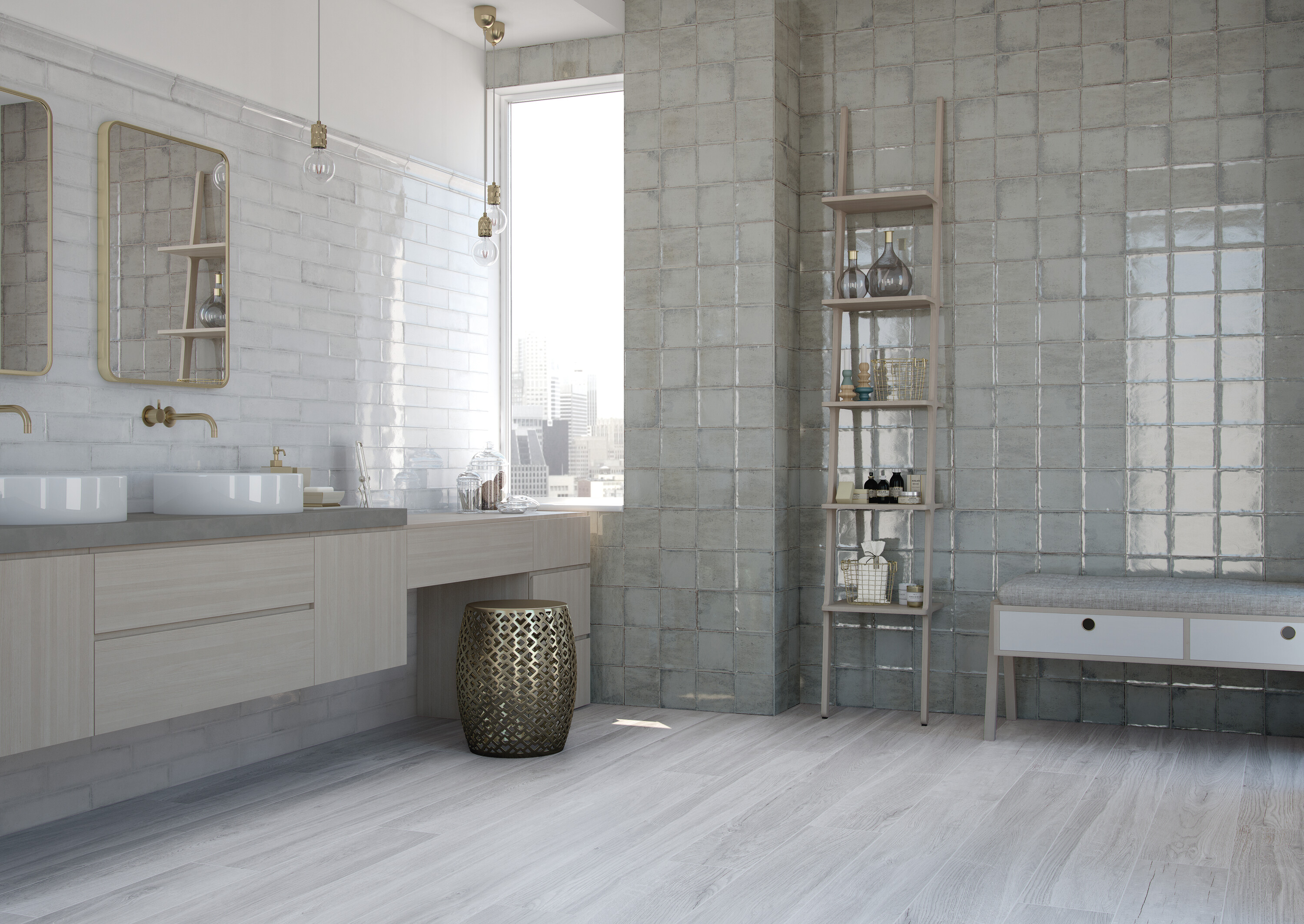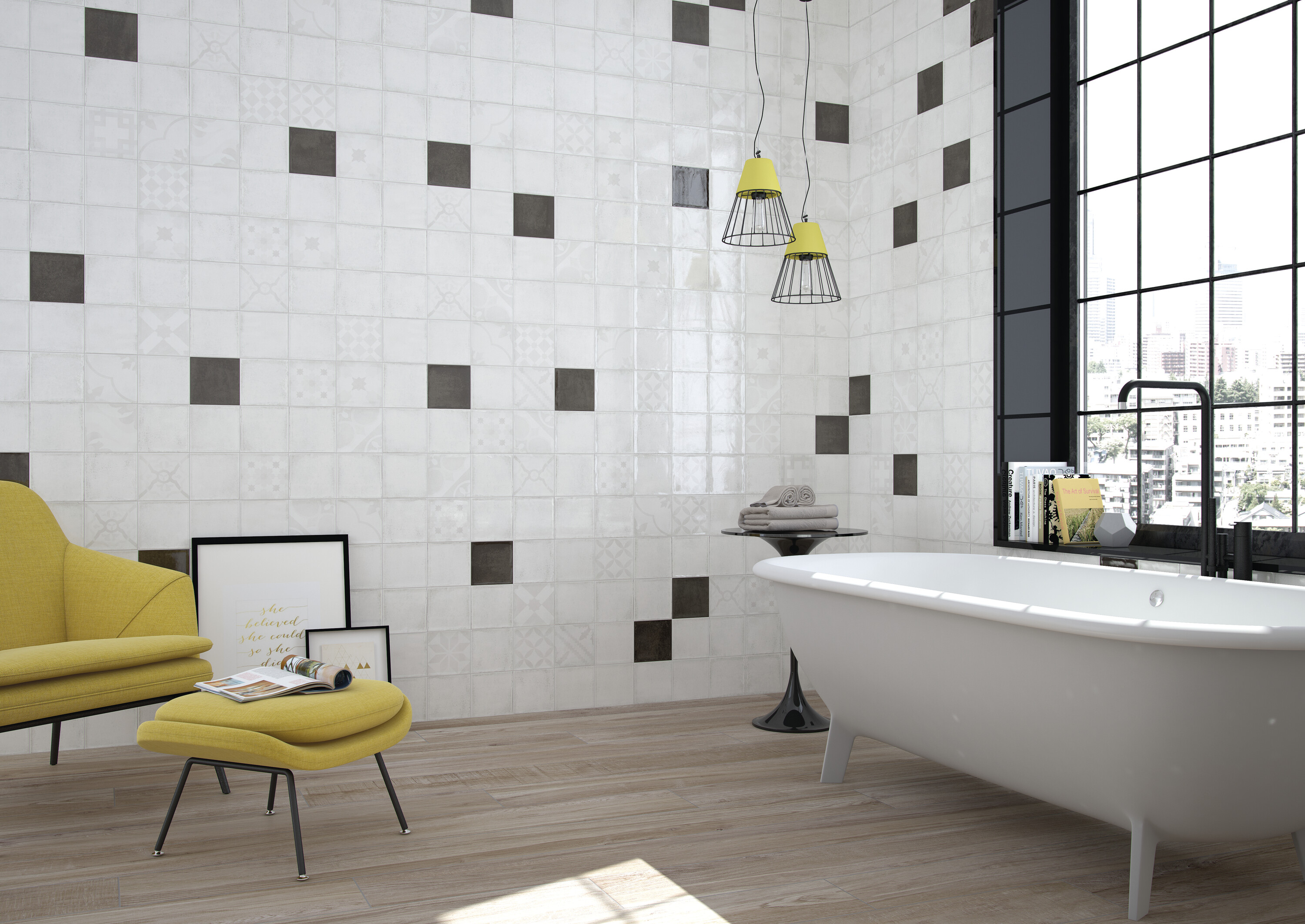 Коллекция Alchimia создает атмосферу уюта и ностальгии благодаря выразительному рельефу и теплой палитре из девяти оттенков. Глянцевая поверхность наполняет пространство светом, а декоративные варианты открывают простор для персонализации.