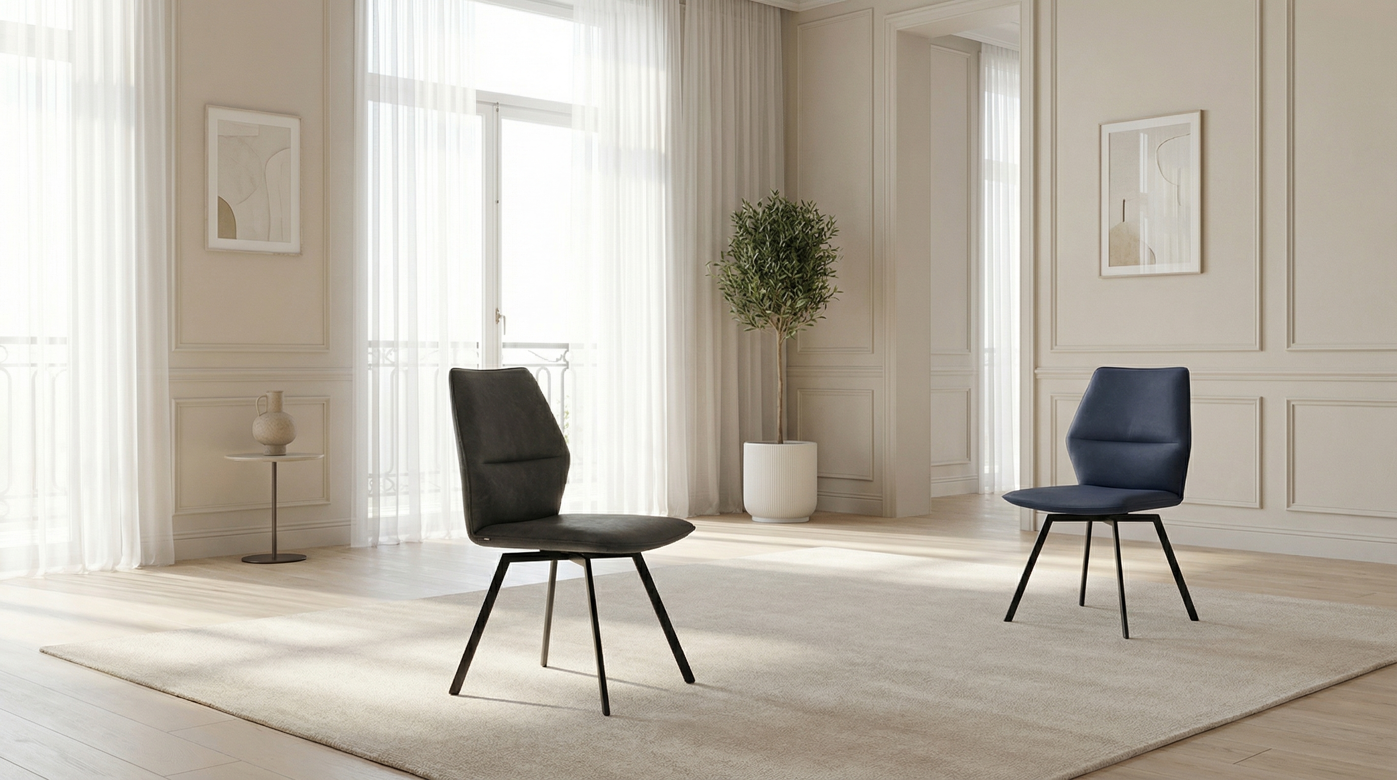 Стулья Aloe легко адаптируются под разные сценарии: обеденная зона, рабочее пространство, переговорная или стильное кафе. Они работают как акцентный элемент, подчёркивая характер интерьера и вкус владельца.