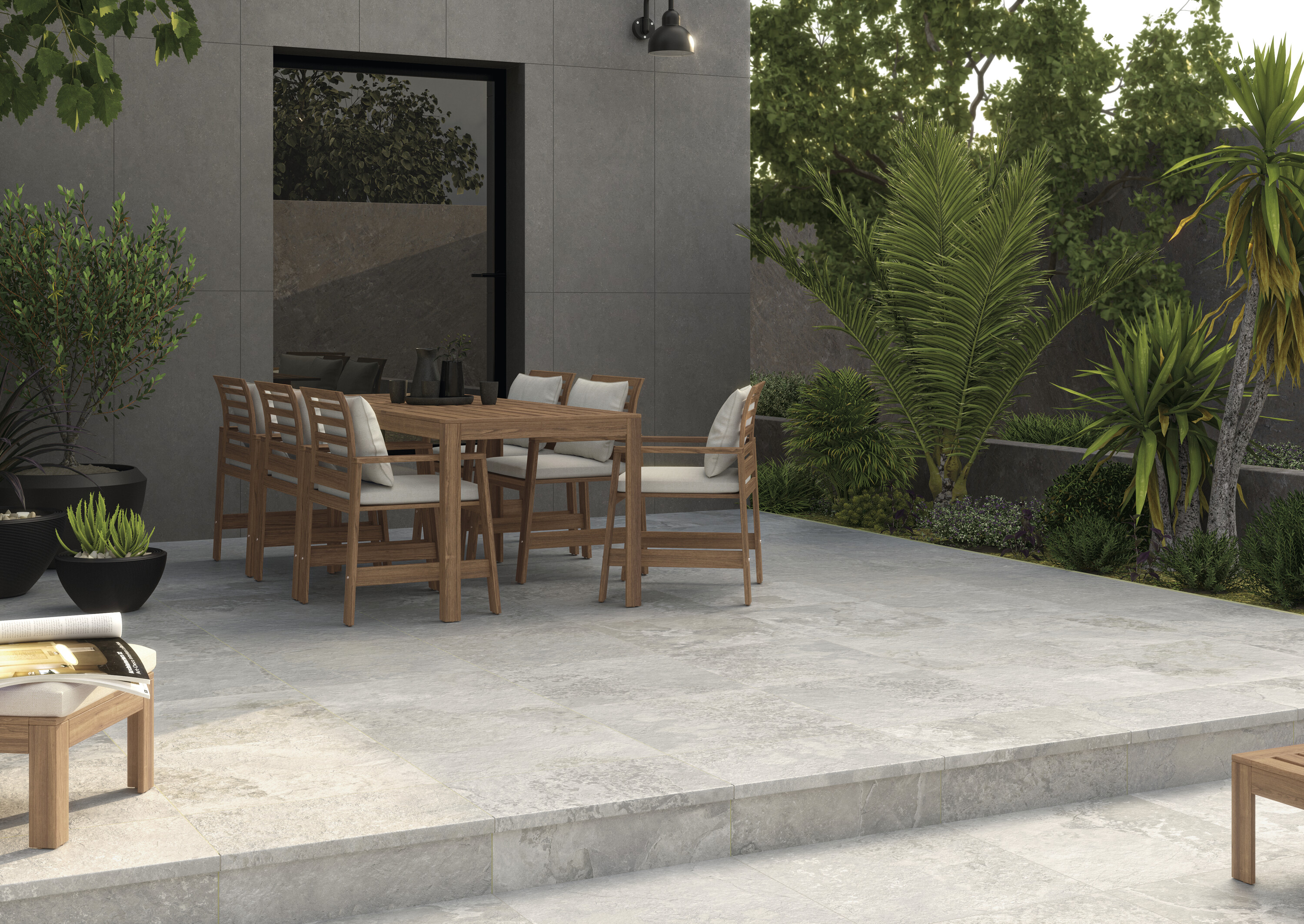 Коллекция включает три формата с матовым покрытием и изысканным рельефом. Благодаря рельефной поверхности плитка идеально подходит для террас и других экстерьеров.