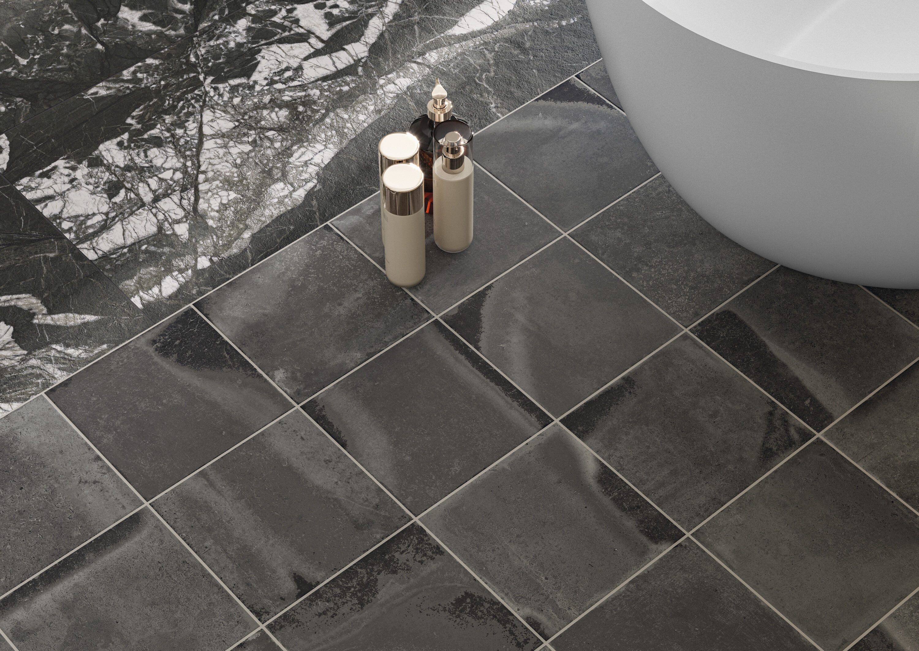 Доступна в матовом исполнении и трех цветах — теплых янтарном и коньячном и холодном графитовом. Противоскользящее покрытие обеспечивает безопасность при укладке на пол.