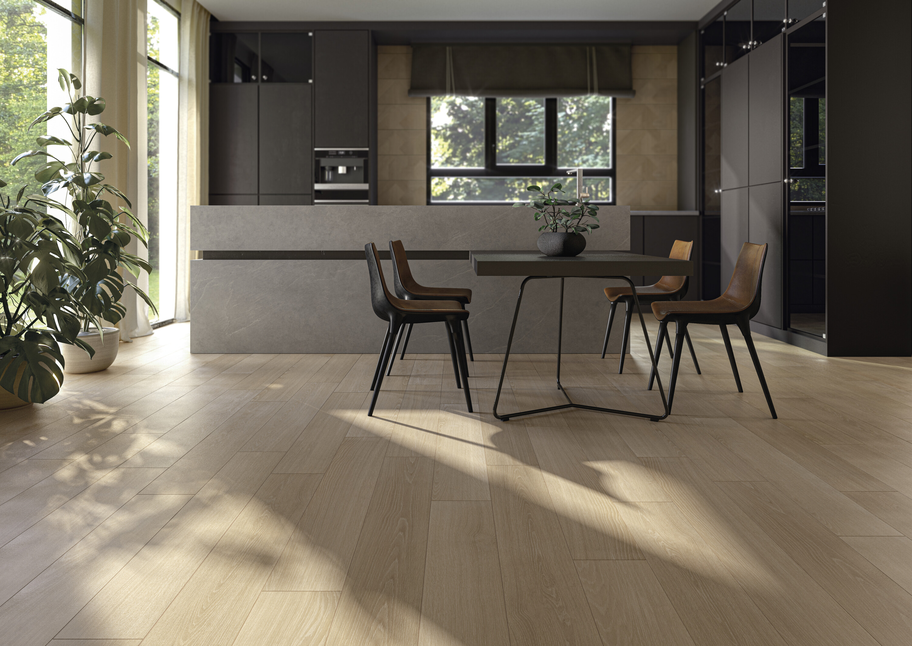 Серия из коллекции WoodMotion представлена в матовом исполнении и двух ректифицированных форматах — 20×120 см и 30×180 см. Три оттенка дерева — клен, дуб и натуральный — позволяют выбирать решение под конкретное пространство и проект.
