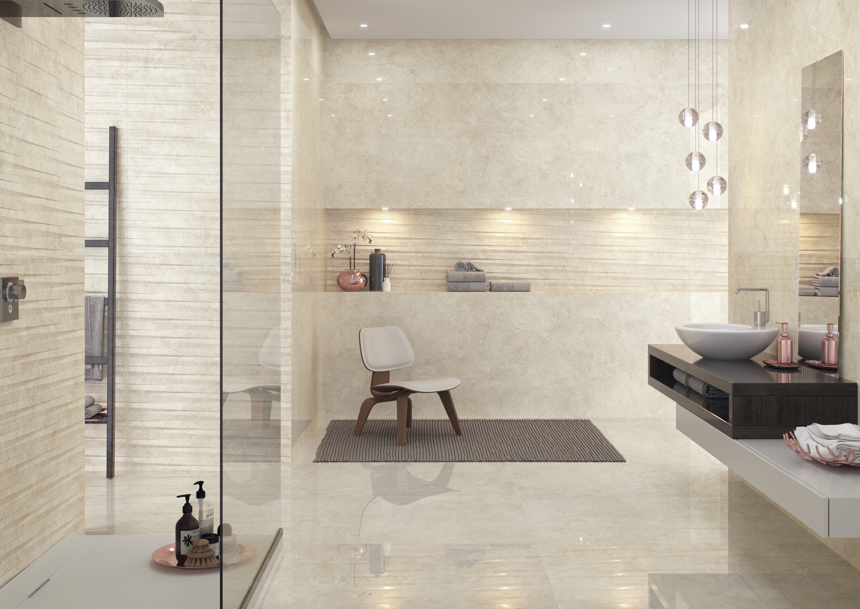 Идеально подходит для стен и полов, эта серия привносит нотку изысканности в любое пространство. Доступна в матовом, полированном и глянцевом исполнении, что способствует визуальному расширению пространства и наполняет его светом.
