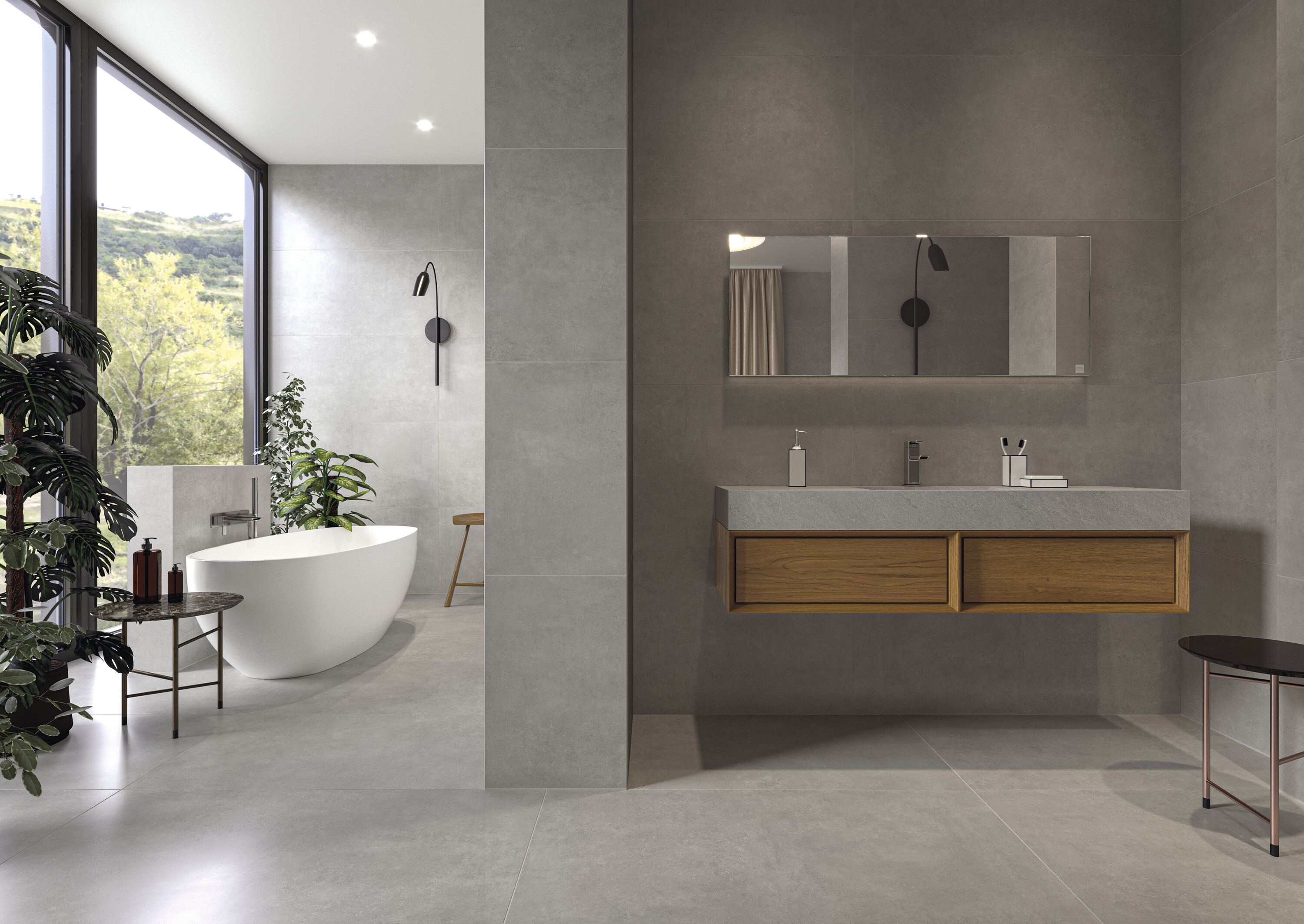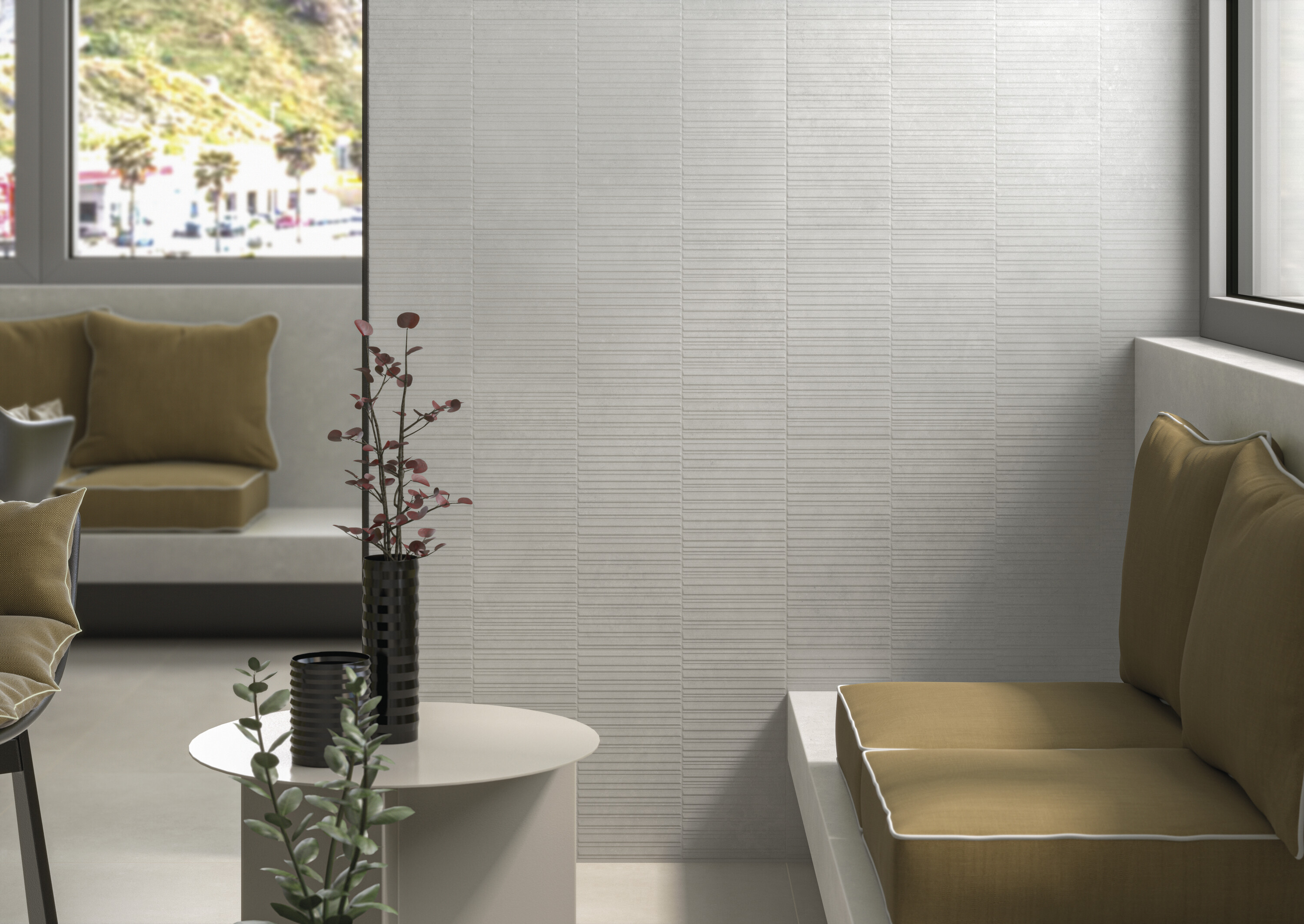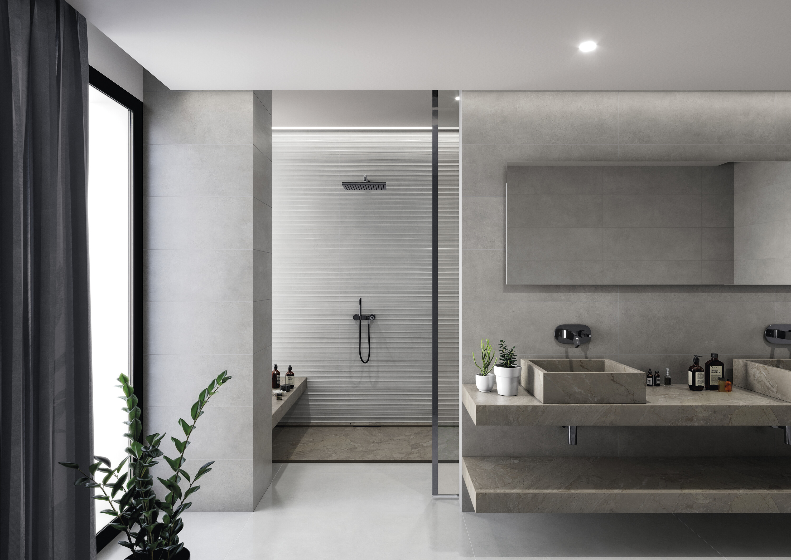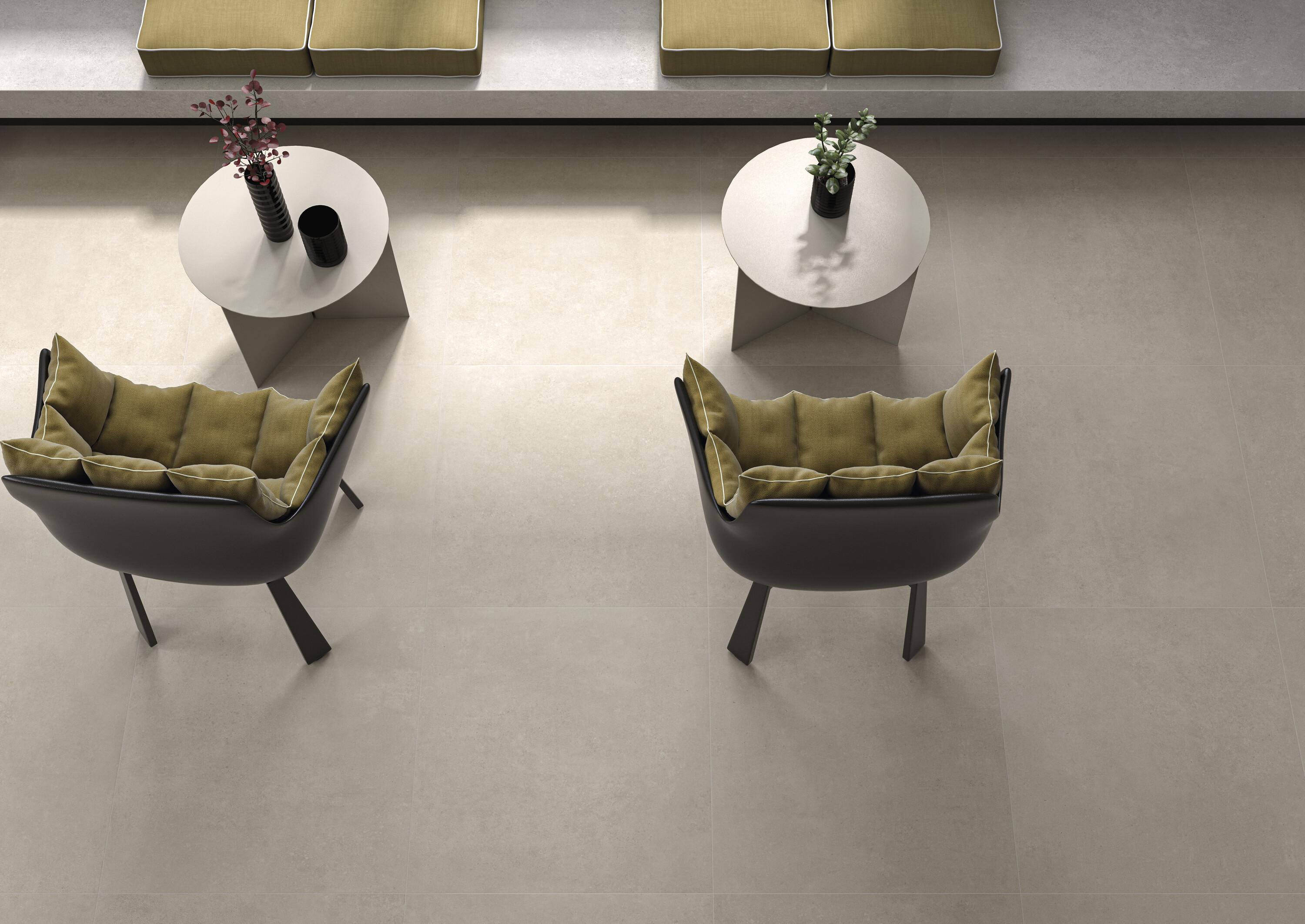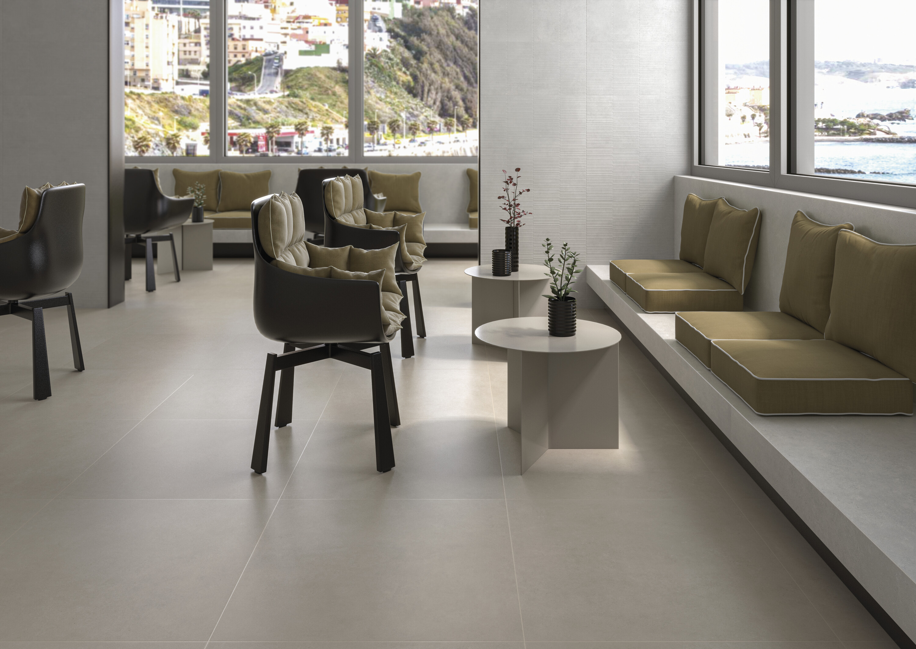 Коллекция воплощает философию осознанного дизайна: тактильно приятные поверхности имитируют естественные текстуры — от шероховатости песчаника до благородной неровности травертина. Нейтральная палитра из бежевых, серых и терракотовых оттенков гармонично сочетается между собой, позволяя создавать сложные композиции и зонировать пространство с помощью фактуры и тона.