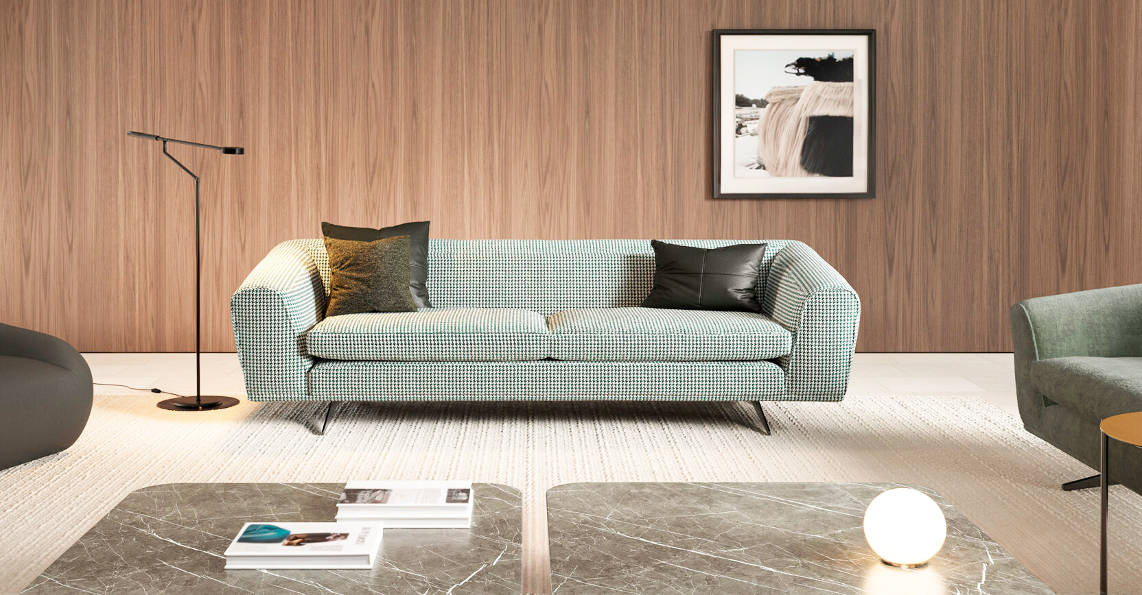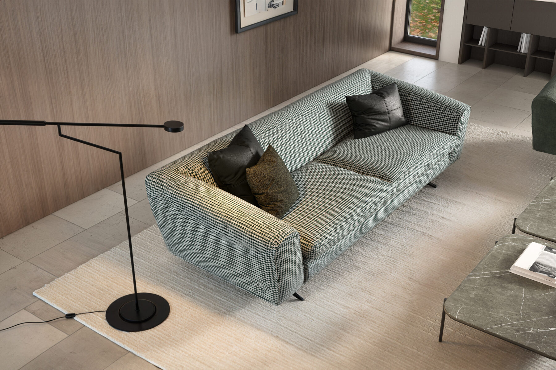 Модель разработана специально для небольших пространств, где важен каждый сантиметр. Благодаря компактной форме, высоким металлическим опорам и широкому сиденью, диван создаёт ощущение простора даже в небольших интерьерах.