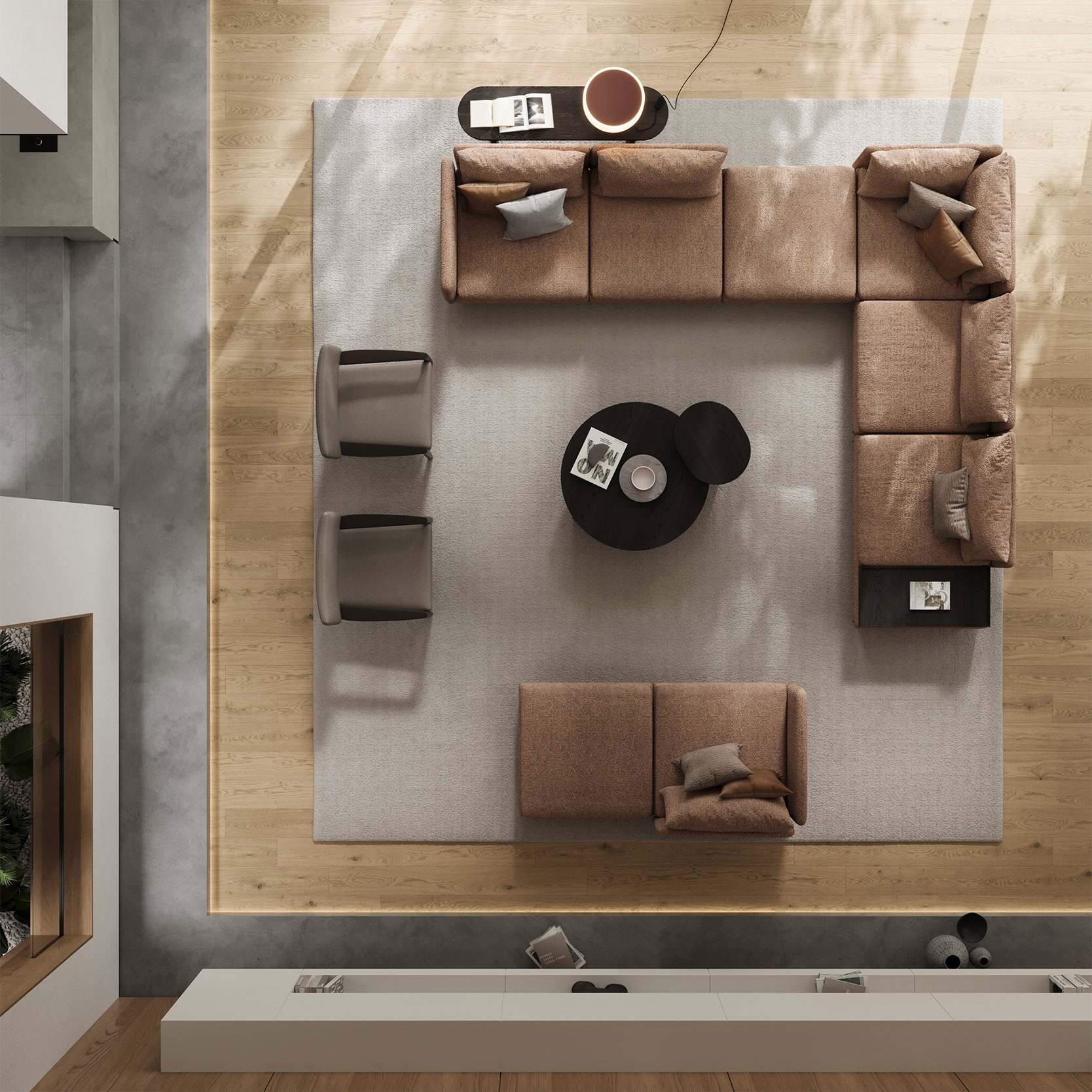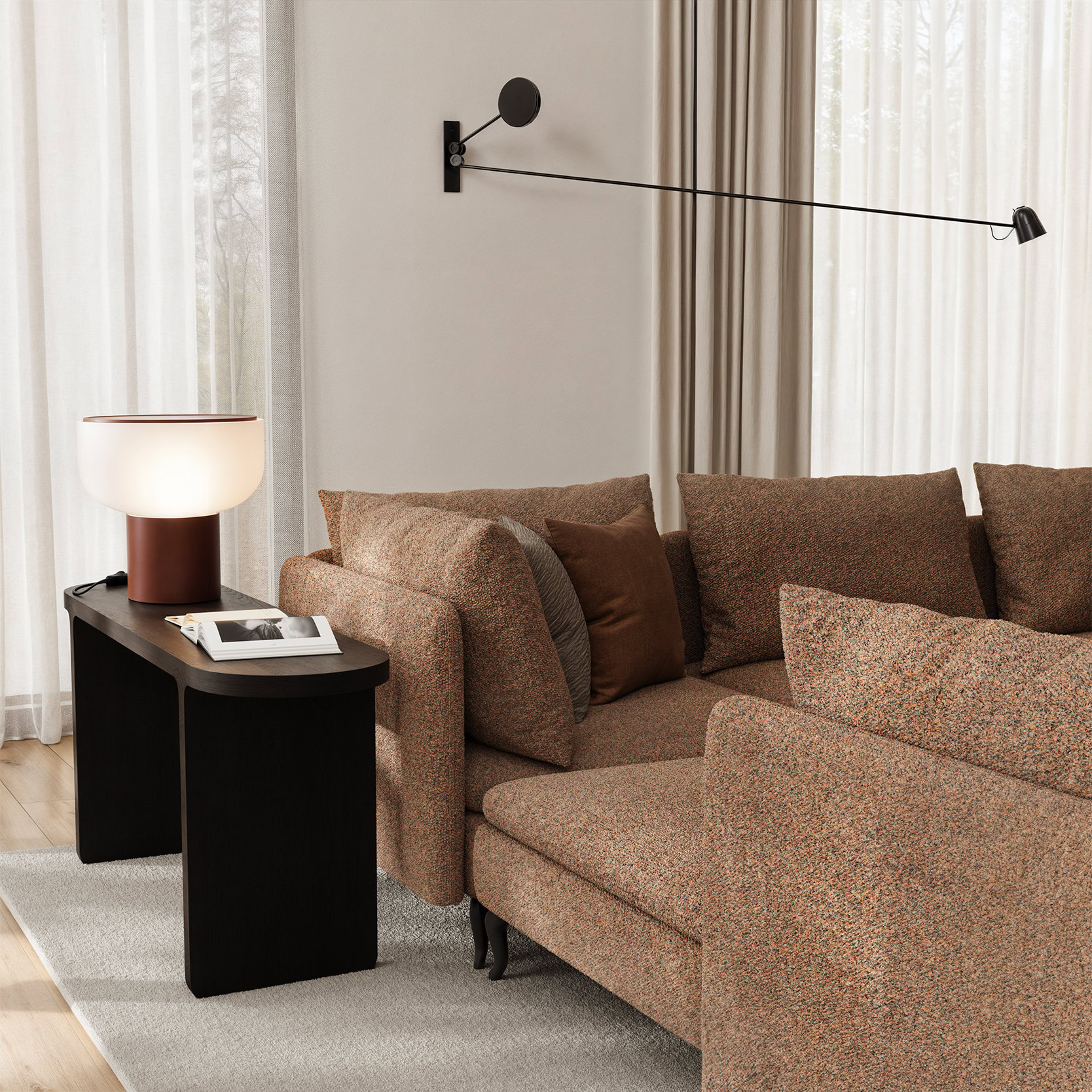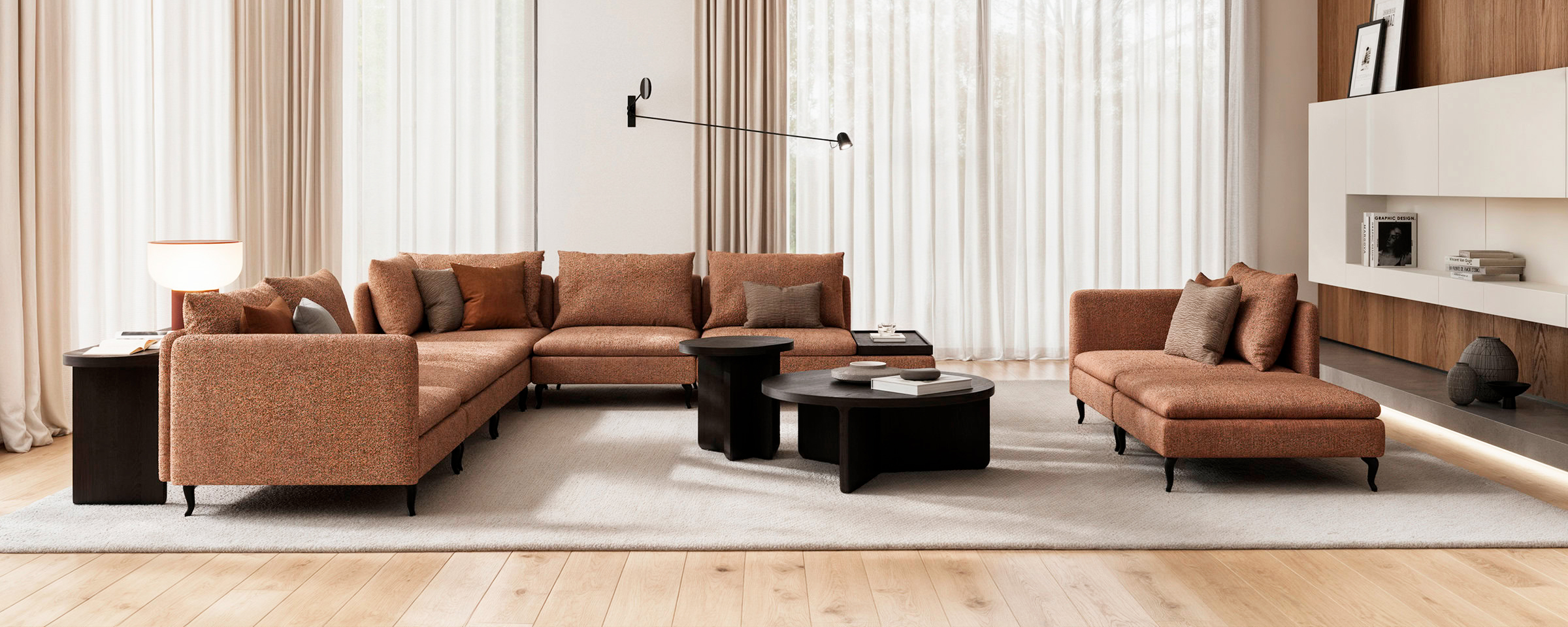 Благодаря модульной системе Monza легко адаптируется под особенности пространства. Разнообразие комбинаций подарит вам возможность создать как уютный уголок для чтения, так и компактную лаунж-зону.
