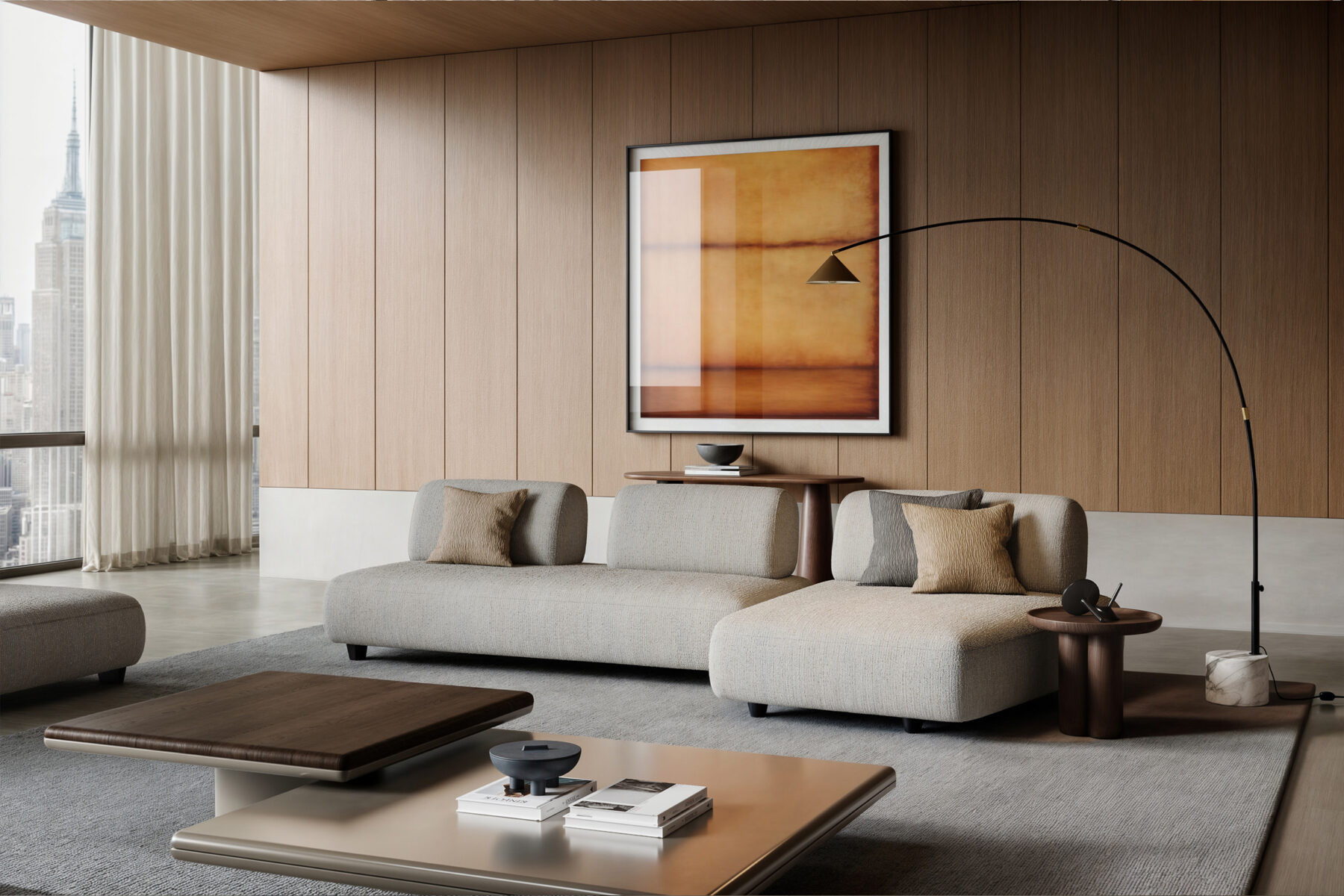 Диван органично вписывается как в динамичные городские интерьеры, так и в спокойные пространства в стиле джапанди. Каждый раз, возвращаясь домой, вы будете чувствовать обволакивающую нежность совершенных линий, словно диван обнимает вас.