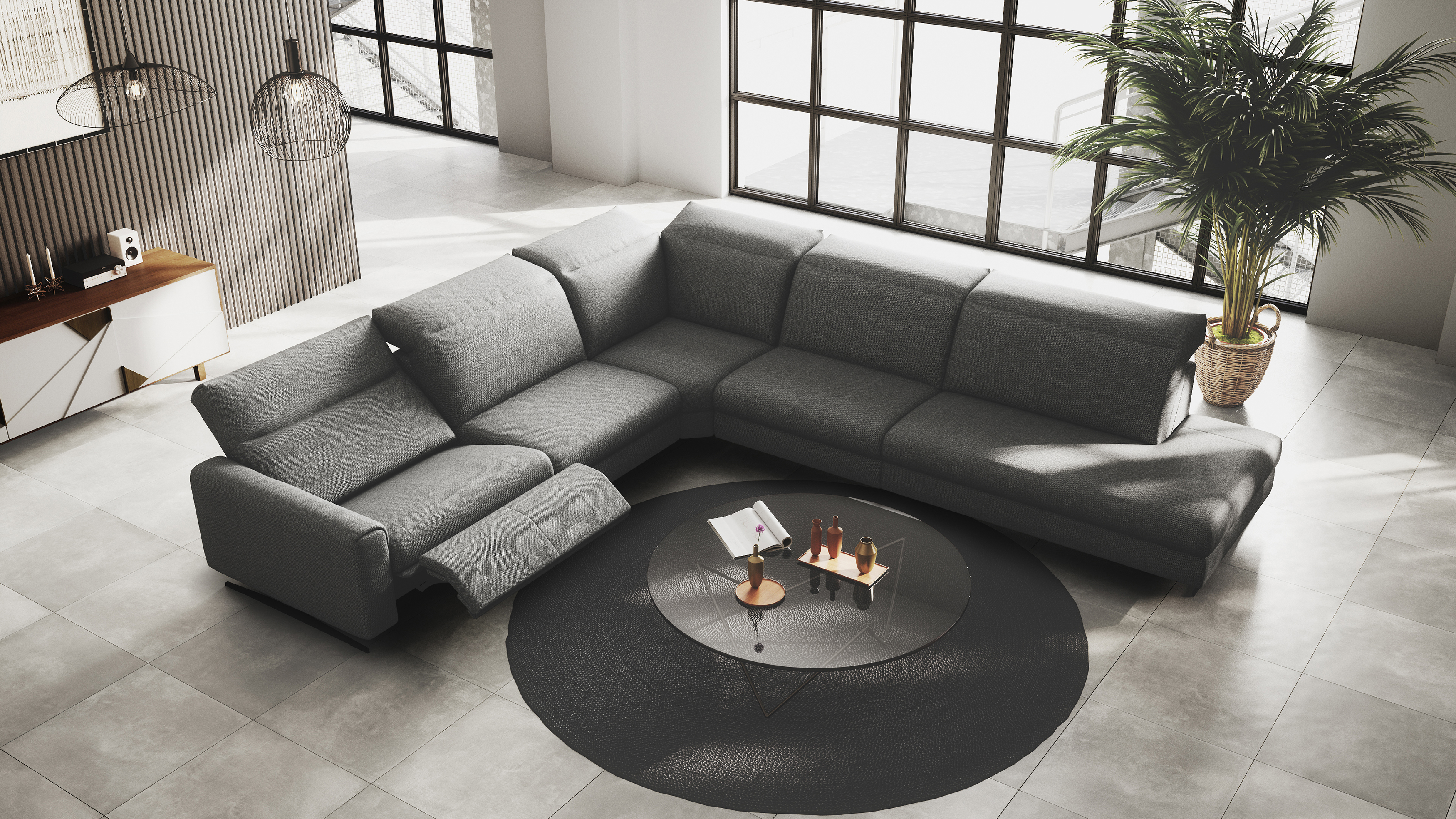 Изысканный дизайн, сочетающийся с превосходным комфортом. Модель может обладать электрическими подголовниками Elegant Zen и реклайнерами MaxRelax.