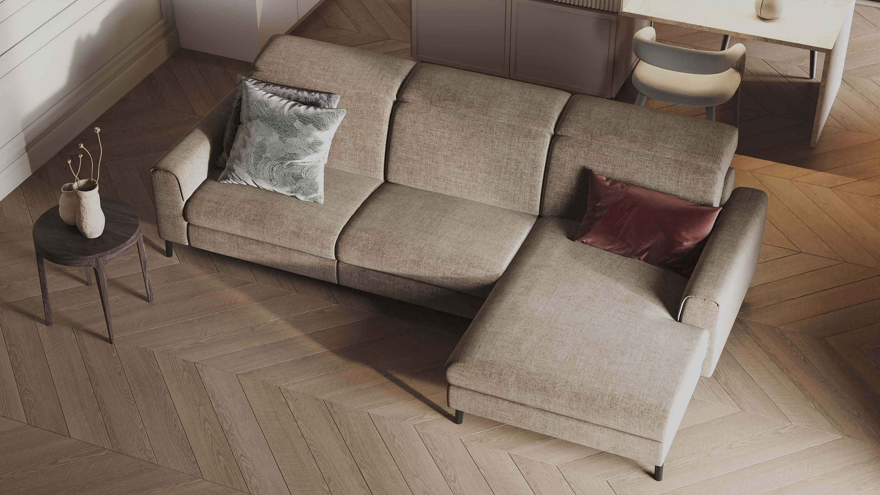 Премиальная ткань и кожа имеют богатую палитру оттенков и дарят эстетическое и тактильное наслаждение. Ваша новая мебель будет идеально сочетаться с интерьером.