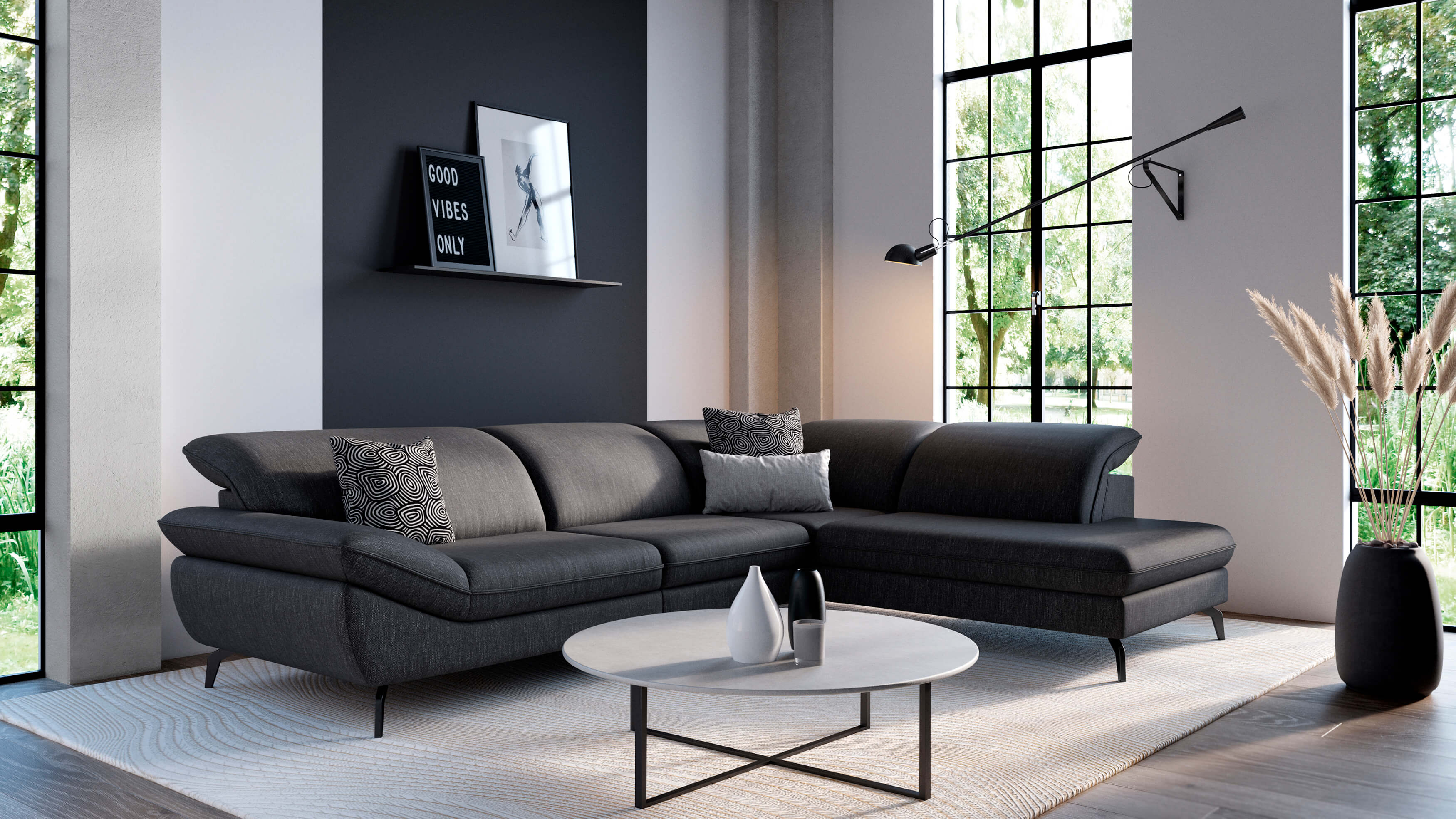 Премиальная ткань и кожа имеют богатую палитру оттенков и дарят эстетическое и тактильное наслаждение. Ваша новая мебель будет идеально сочетаться с интерьером.
