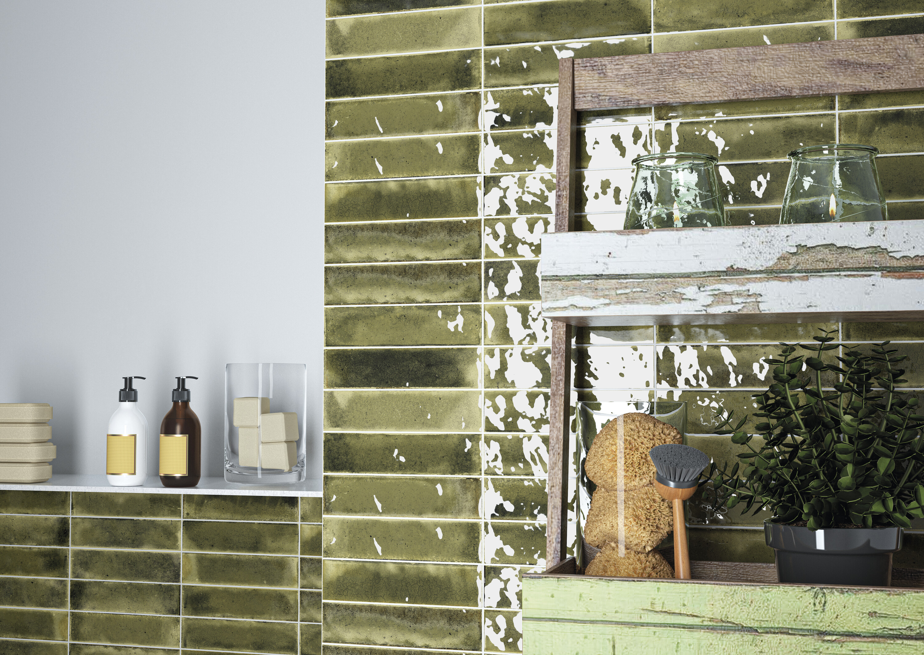 Формат 6×24,6 см превращает каждую плитку в мазок кисти, а 13 оттенков — в полноценную палитру художника. От чистого белого до глубокого чёрного, от нежного розового до сочного зелёного, от прохладного синего до тёплого карамельного — каждый цвет здесь имеет свой характер.