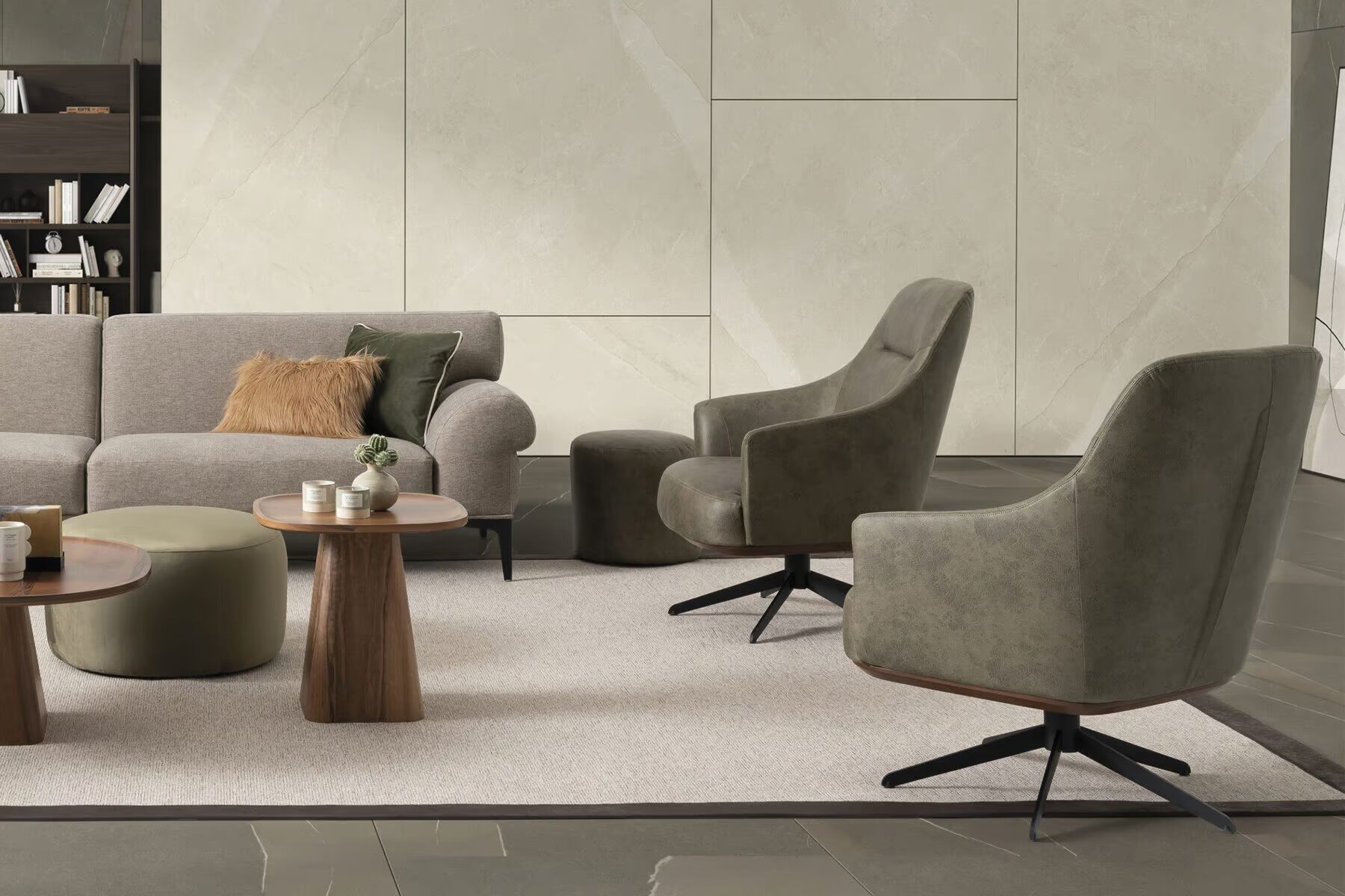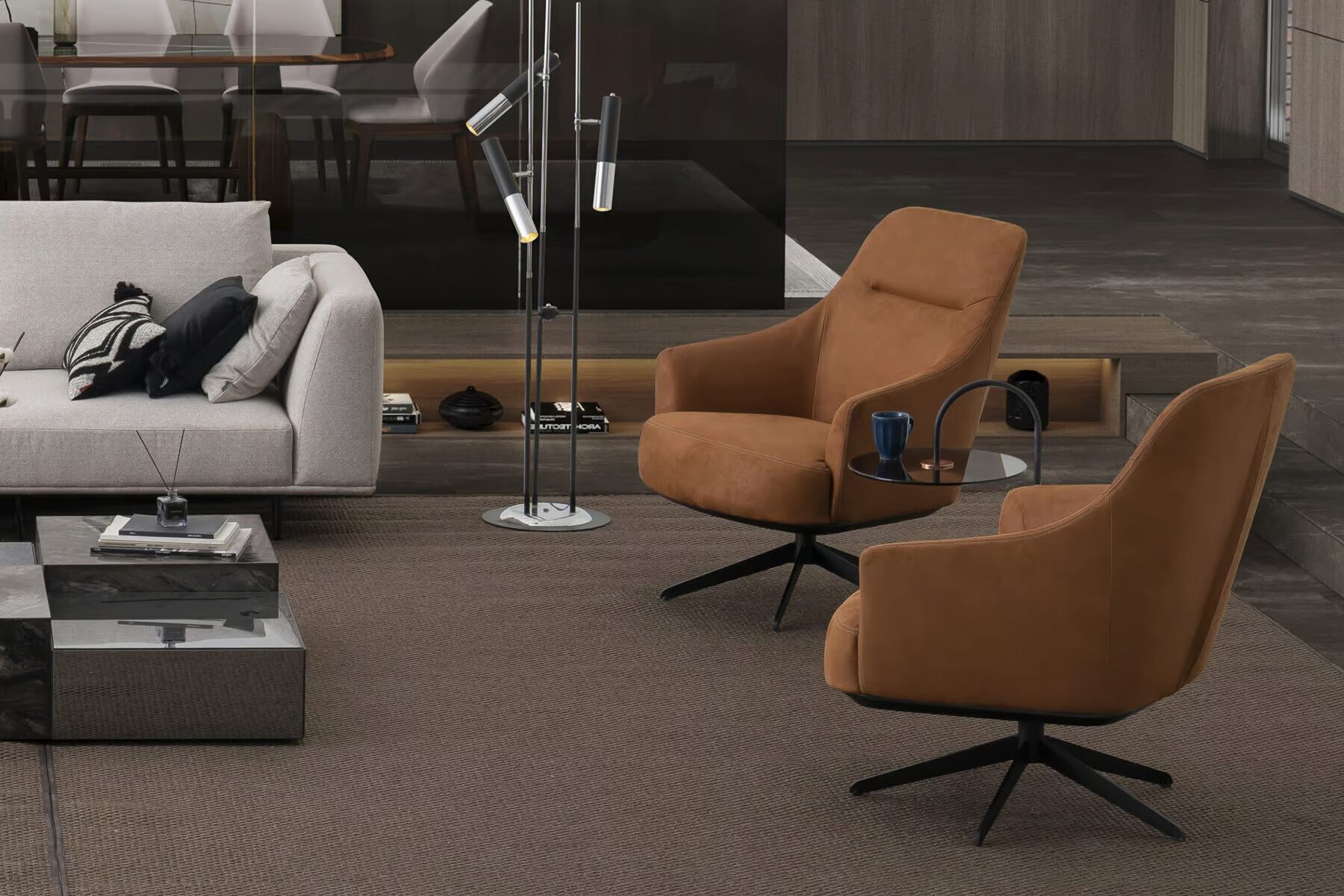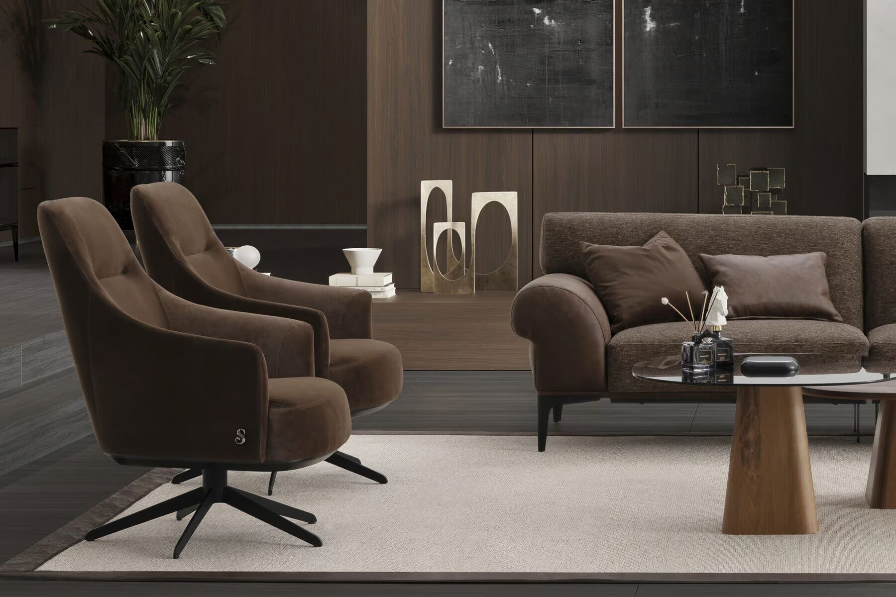 Кресло Diva выбирают те, кто ценит элегантность в каждом штрихе и комфорт в каждом движении. Его поворотный механизм позволяет легко менять положение. Это продуманное решение для вашего отдыха, которое подстраивается под вас.