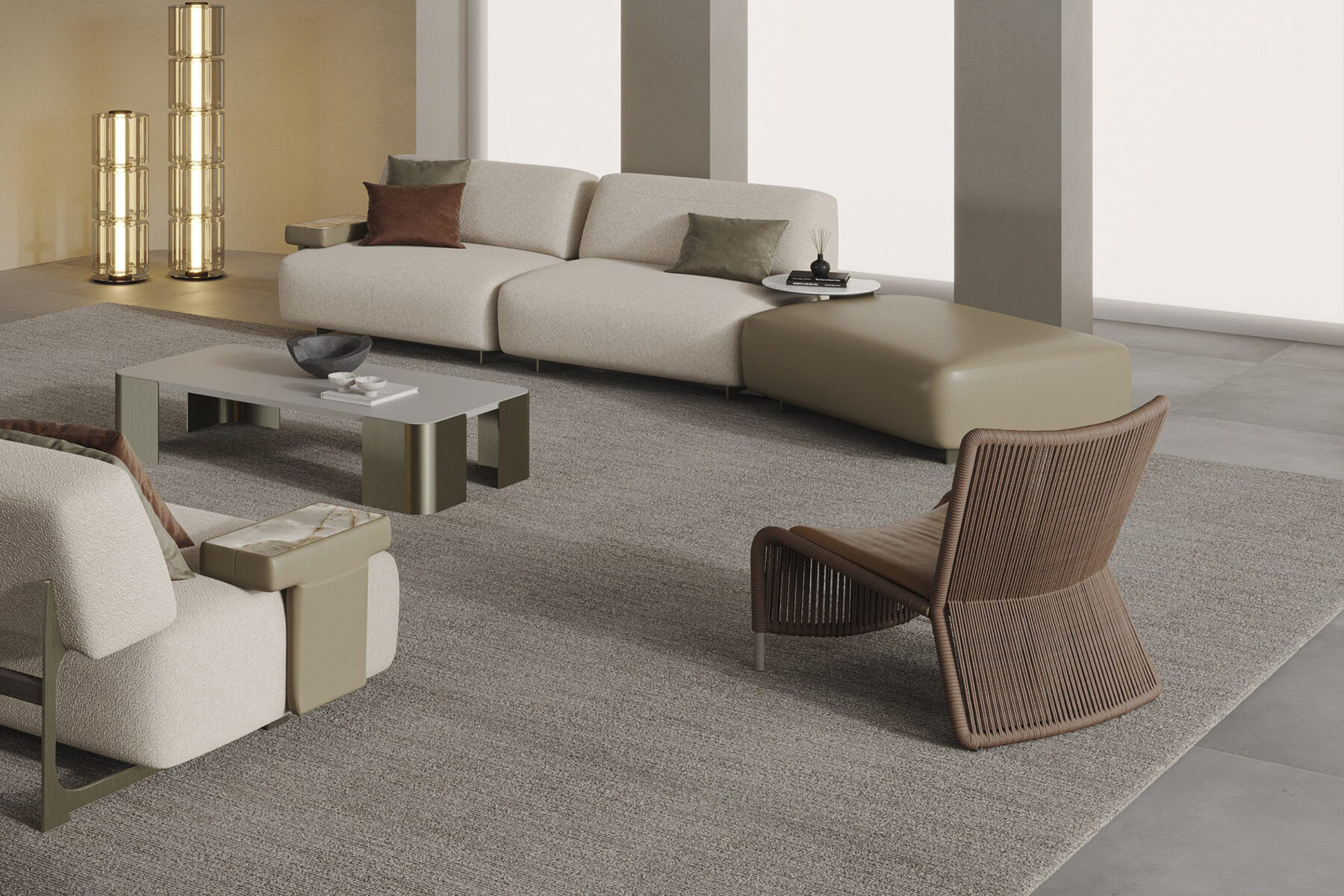 Кресло Noster — это предмет, который сразу привлекает внимание. Прямоугольная форма, подчеркнутая обивкой из тканевых канатов, делает силуэт архитектурно выверенным и выразительным. Noster станет тем самым элементом, который добавит вашему интерьеру индивидуальность и ощущение завершённости.