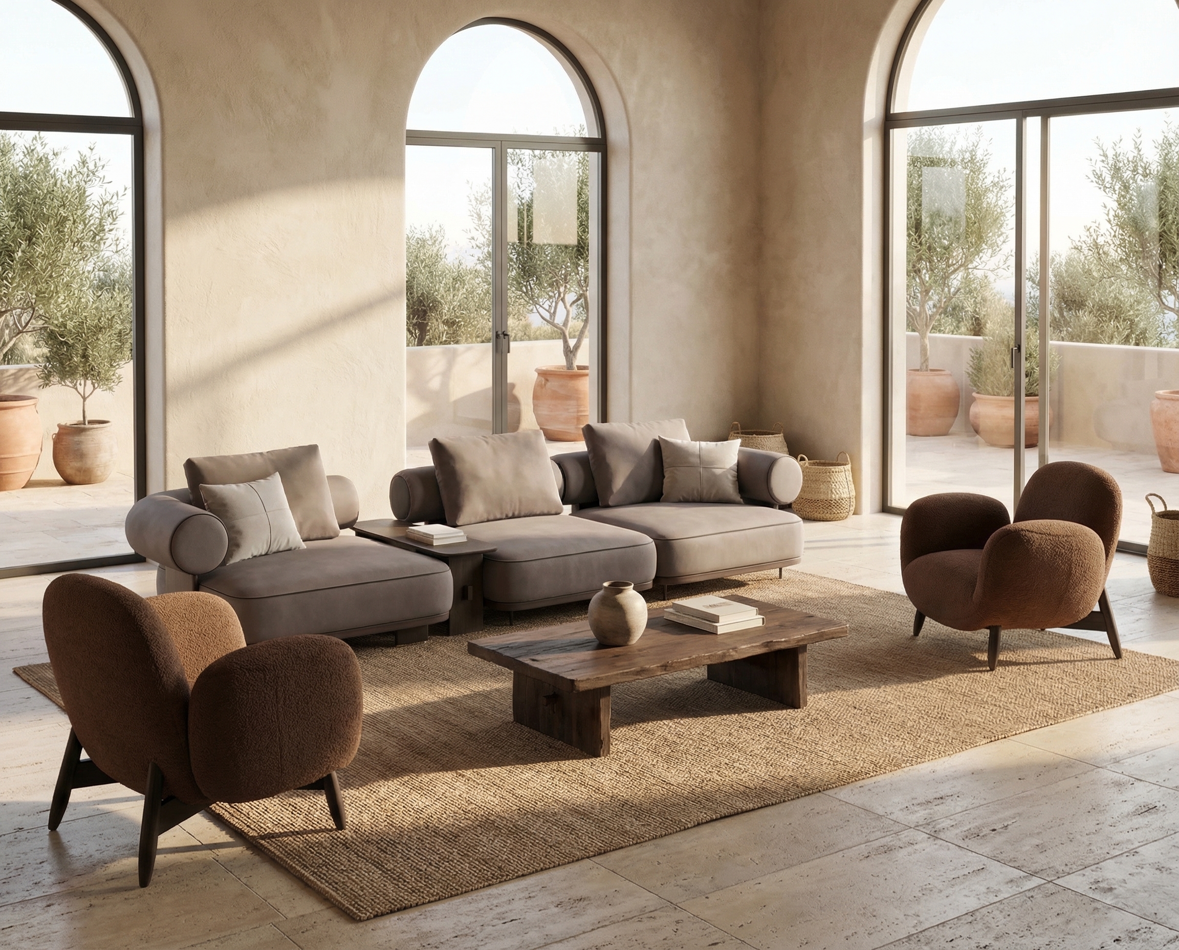 Коллекция кресел Olaf создана для пространств, где важны тактильность, спокойствие и выразительная форма. Объёмный силуэт с округлыми подлокотниками и плавными линиями создаёт ощущение цельности — кресло выглядит как мягкая скульптура, вокруг которой естественно выстраивается интерьер.