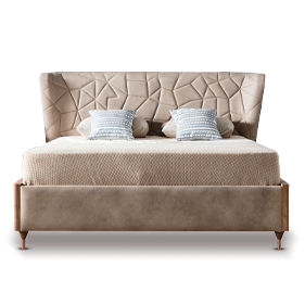 Металлические ножки приподнимают конструкцию, добавляя пространству воздуха и графичности. Благодаря этому кровать выглядит почти невесомой, сохраняя при этом устойчивость и четкую архитектуру. Мягкое изголовье из двух объемных секций формирует комфортную поддержку и задает уютное настроение.