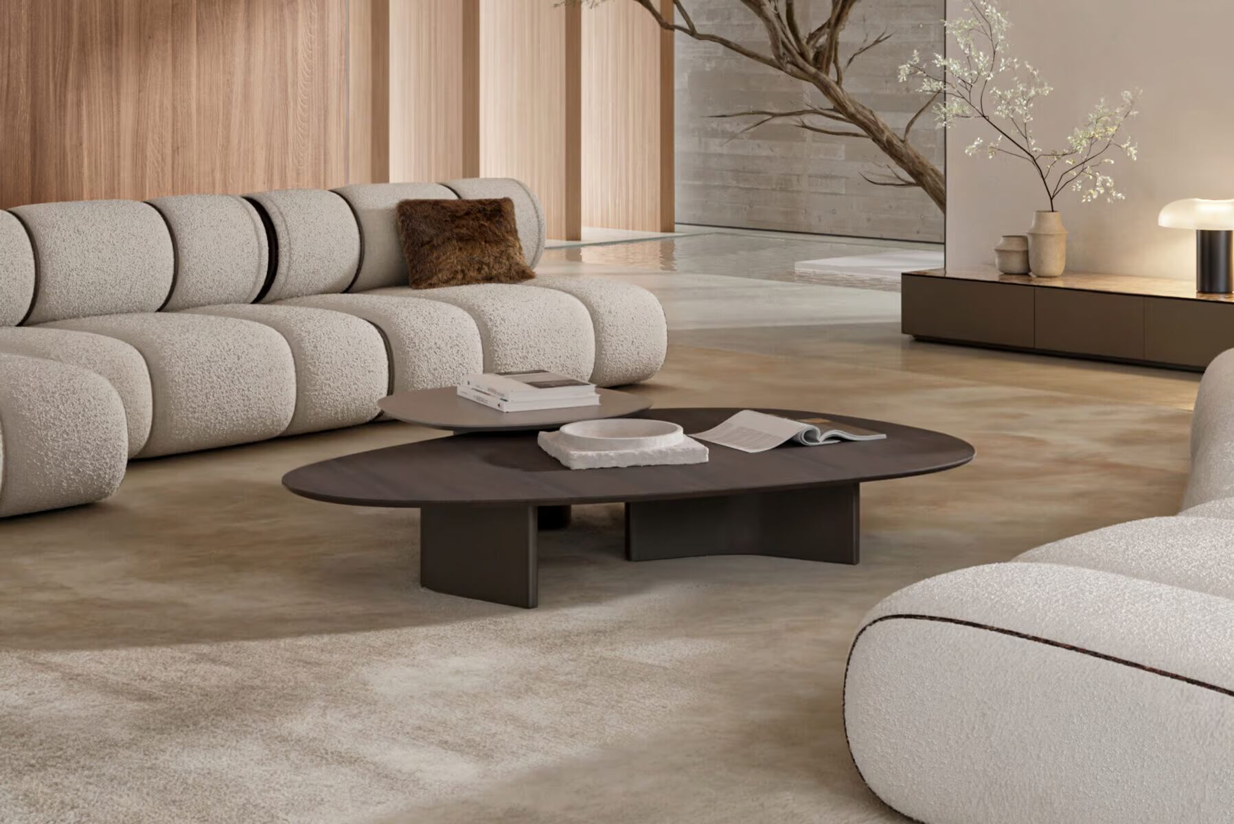 Дизайн Lava адаптирован к современным стилям оформления. Журнальные столы привлекают внимание прочностью и элегантностью. Благородная фактура шпона образует самостоятельный выразительный акцент, притягивающий тактильным и визуальным богатством.
