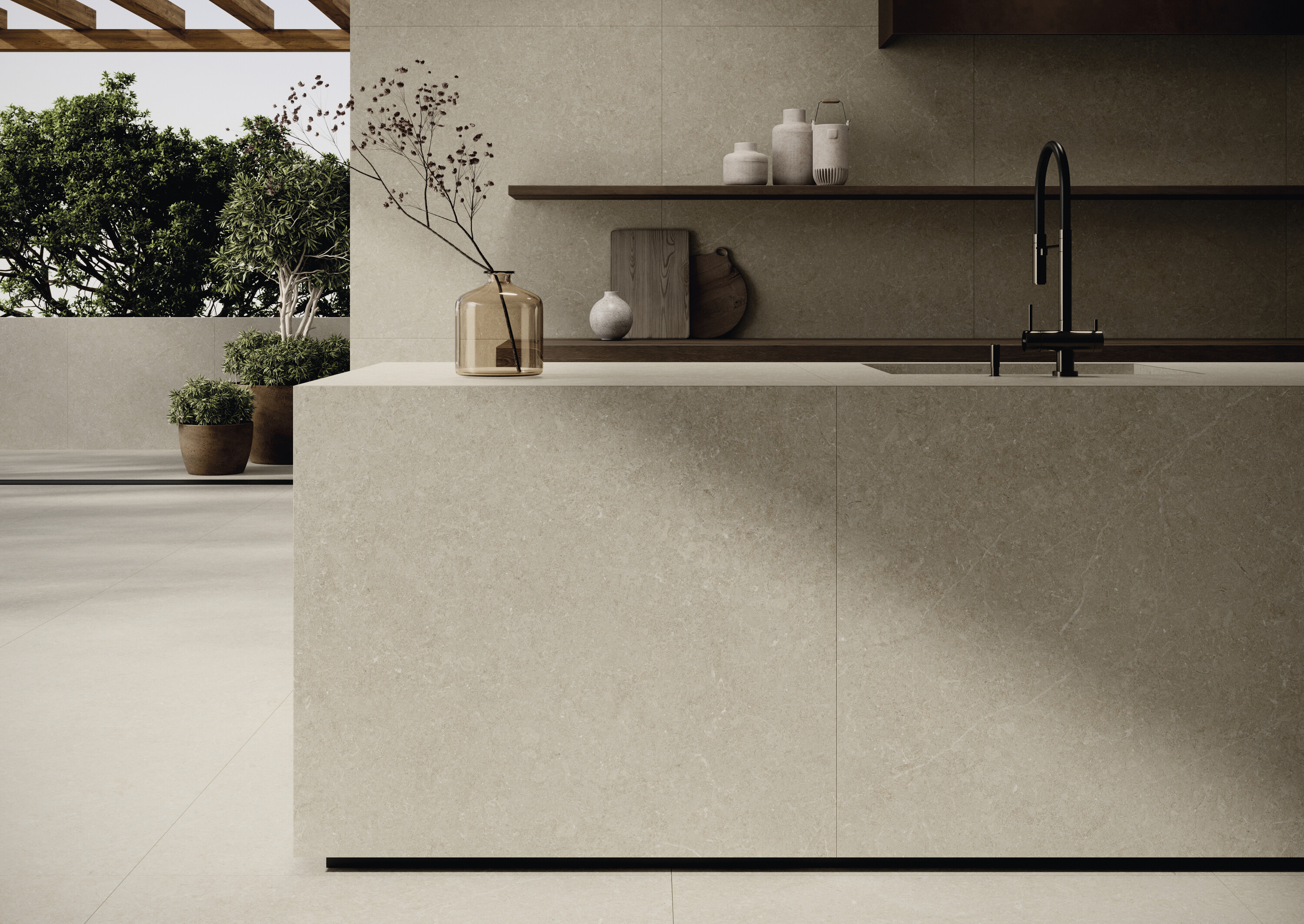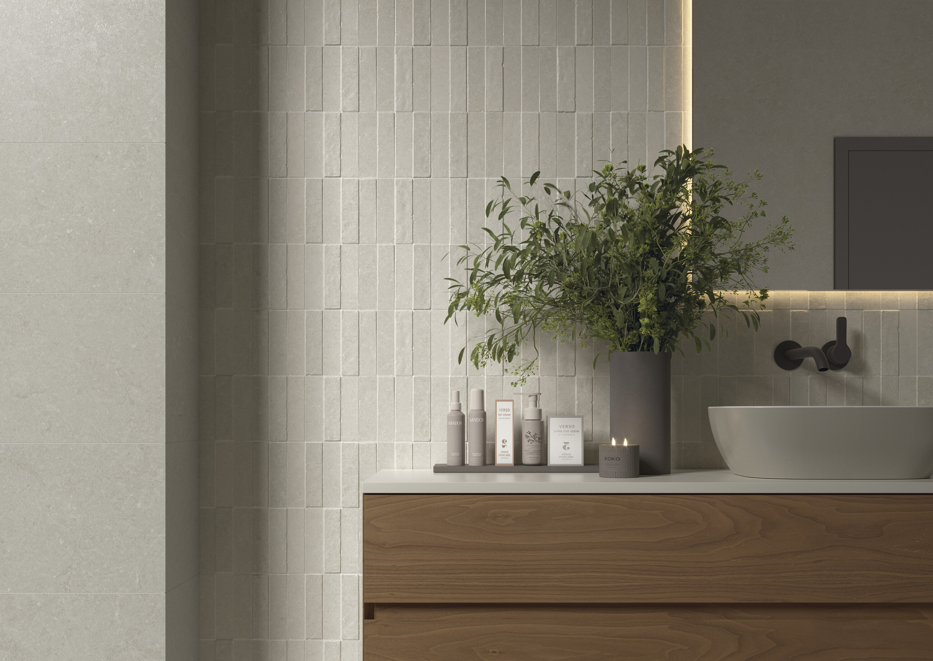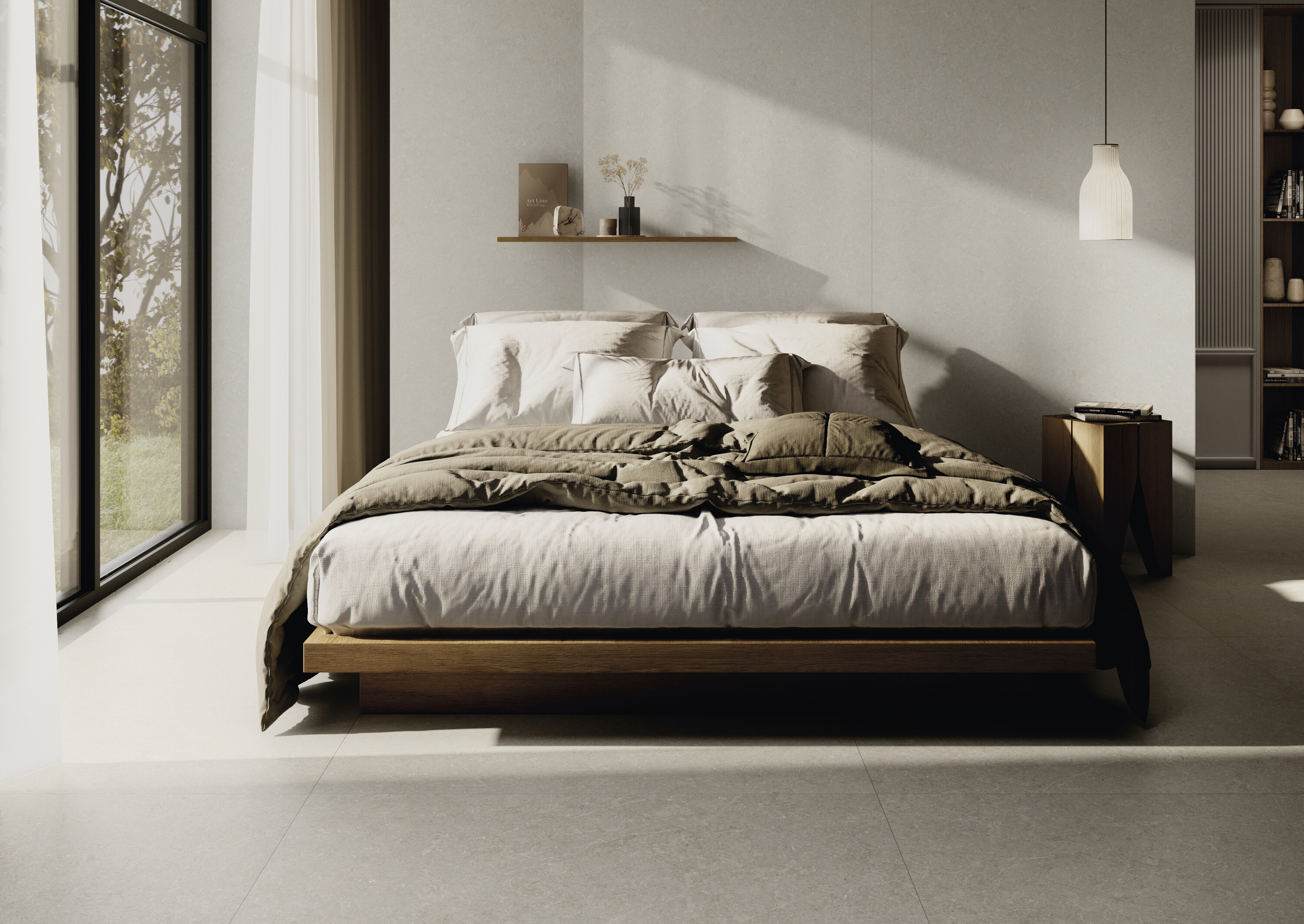 Нейтральная гамма из четырех оттенков представлена в диапазоне форматов от компактного 60×60 до впечатляющего 120×280 см.
