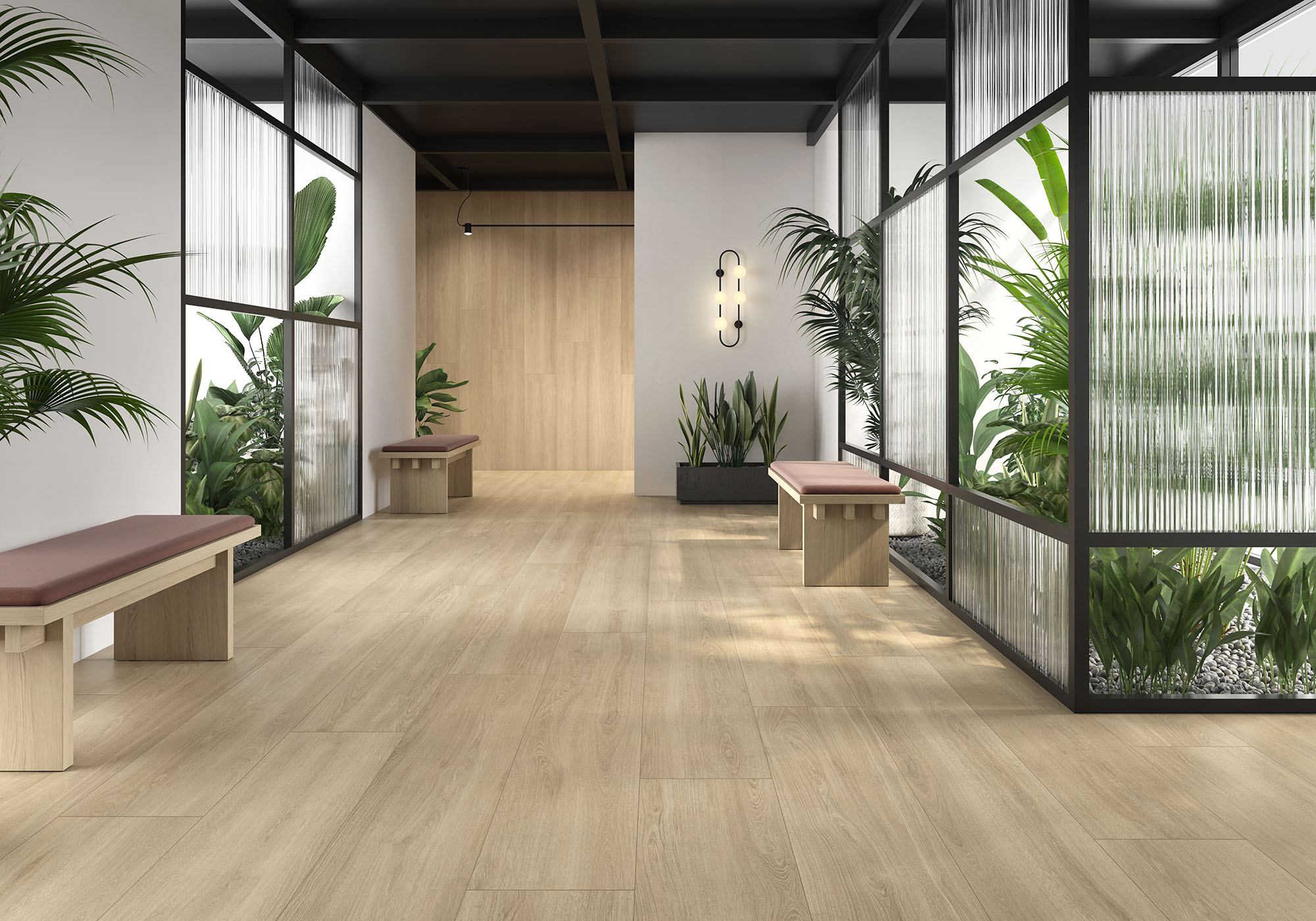 Коллекция Nordik от Geotiles передает сдержанную красоту и прохладную элегантность древесины северных лесов. Три благородных оттенка — клен, орех и вишня — представлены в форматах 20×150 см и 25×150 см, что позволяет создавать современные композиции.