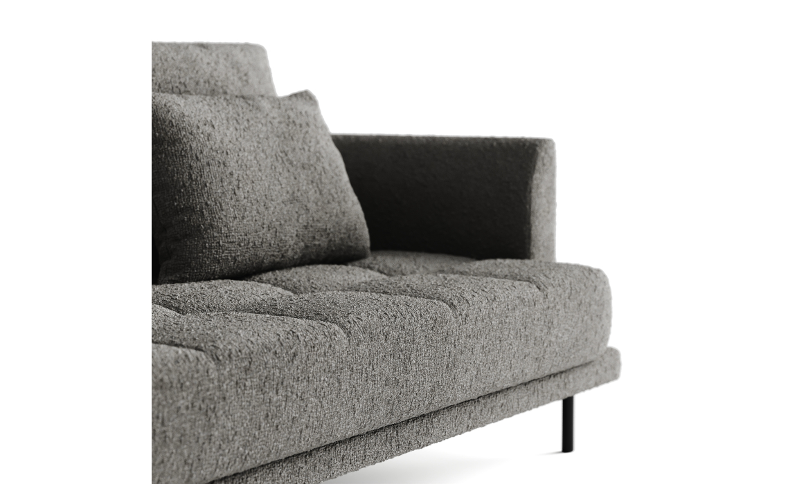 Инновационный наполнитель обеспечивает непревзойденный комфорт. Благородная фактура обивки и сдержанный оттенок создают эффект визуальной лёгкости. Строгие металлические ножки в черном исполнении подчеркивают архитектурную выразительность силуэта.