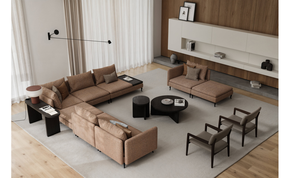 Благодаря модульной системе легко адаптируется под особенности пространства. Разнообразие комбинаций подарит вам возможность создать как уютный уголок для чтения, так и компактную лаунж-зону.