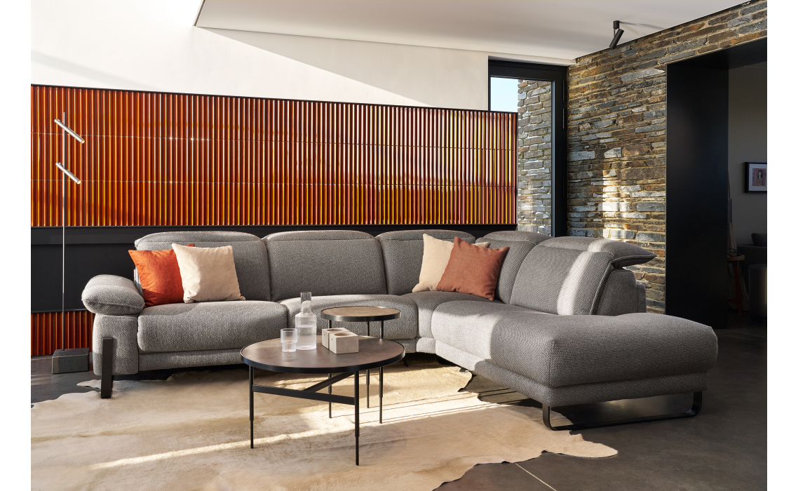 Эргономичная угловая конструкция идеально подходит для уютных вечеров в кругу семьи или друзей. Диван можно персонализировать: выбрать оптимальный размер, цвет и обивочный материал из ассортимента европейских производителей.