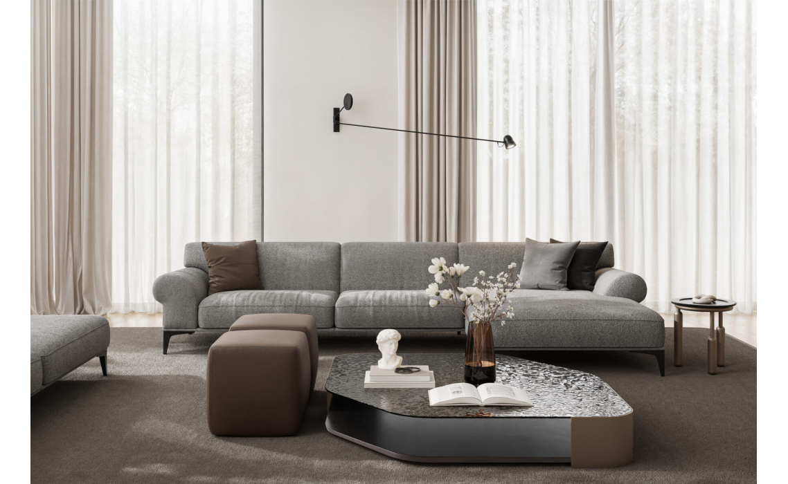 Диван Torino 2023 вдохновлён атмосферой одноимённого испанского города — мягкого, романтичного, с нотками аристократического провинциального очарования. Его силуэт — это гармония форм и лаконичных линий, в которых чувствуются легкость и роскошь юга Европы. Такой акцент в интерьере — знак тонкого вкуса владельца.