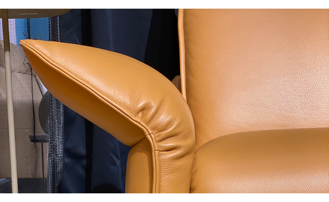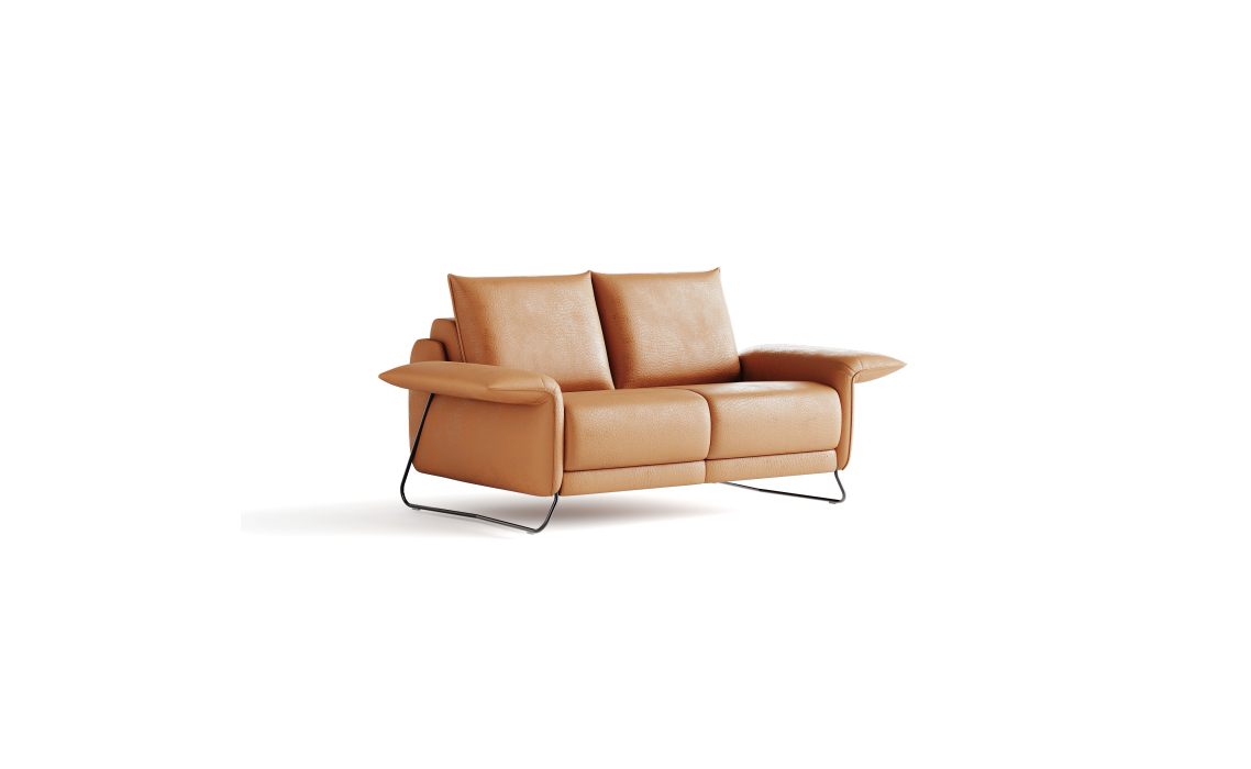 Прямой диван Vitis из итальянской кожи влюбляет в себя изысканными формами спинки и сидения, которые эффектно смотрятся в акцентном оттенке Montana Whisky. Дизайнерские металлические ножки в черном цвете и изогнутые подлокотники Basic выгодно подчеркивают роскошный облик и статусность модели.