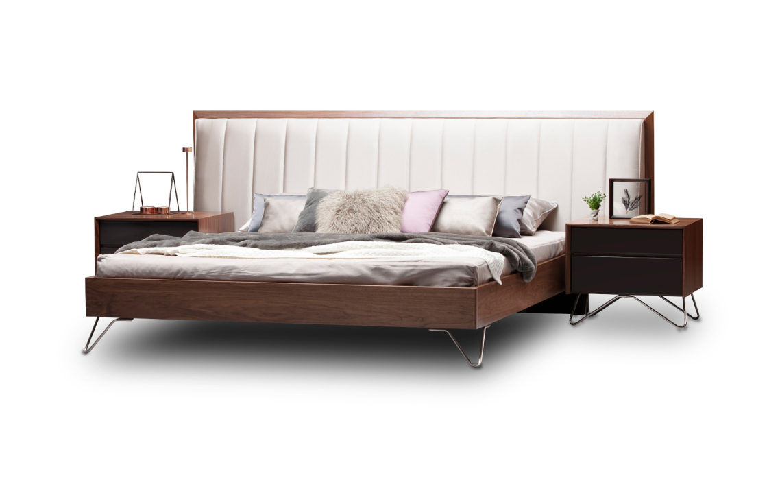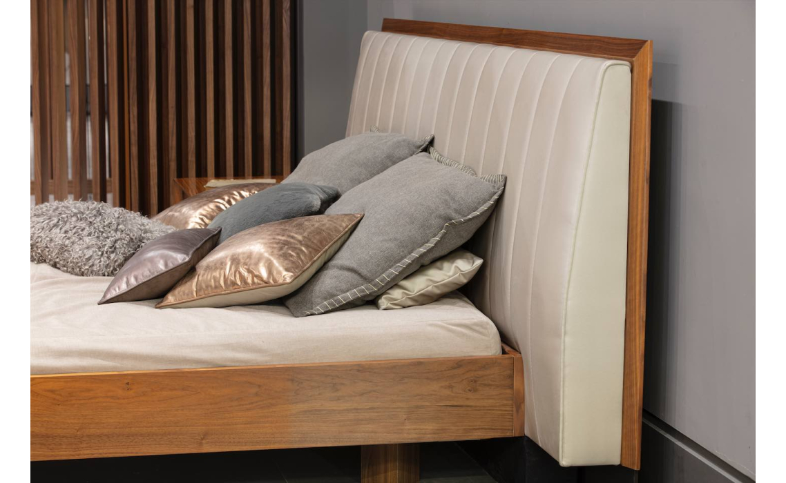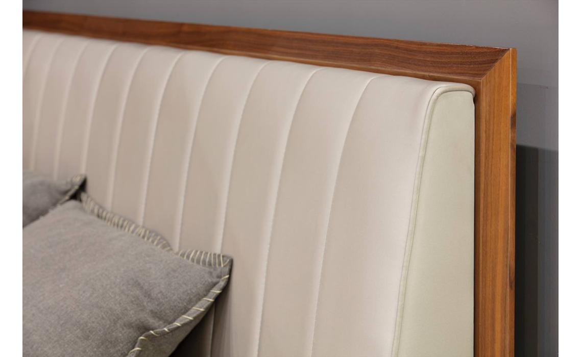Деревянные элементы в отделке кровати подчеркивают ее изысканный облик, добавляя ноты скандинавского минимализма. Строгие линии и нейтральная цветовая палитра делают модель MIRO универсальным выбором для современных и классических интерьеров.
