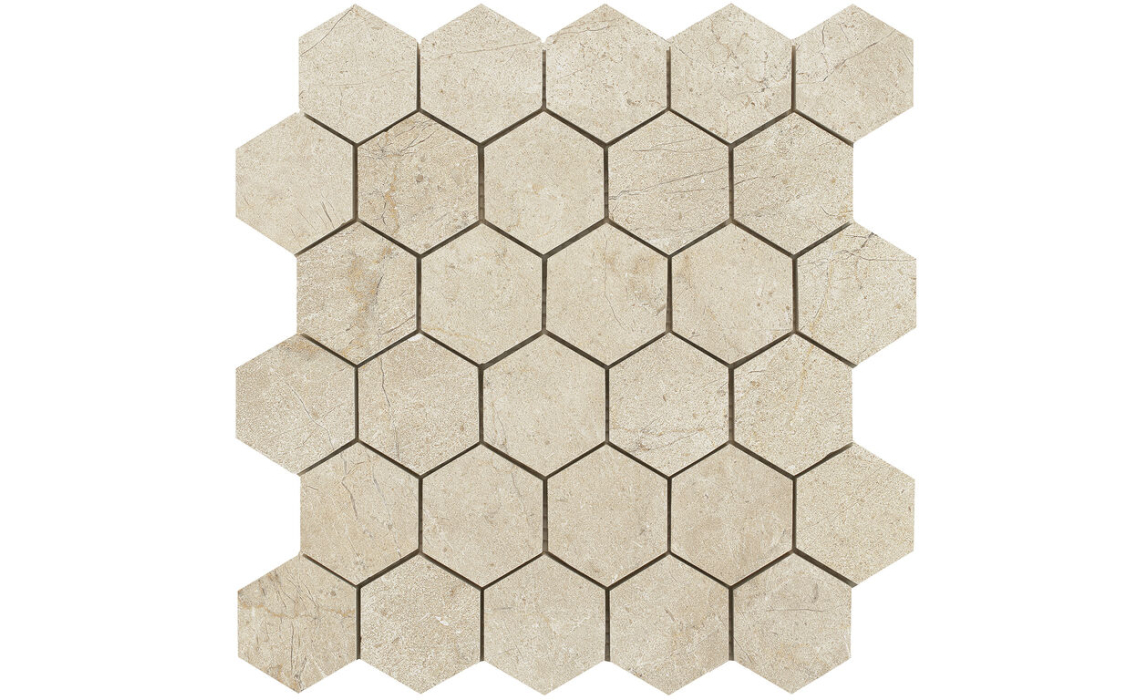 CREMA MARFIL HEXAGON BRILLO 30X30