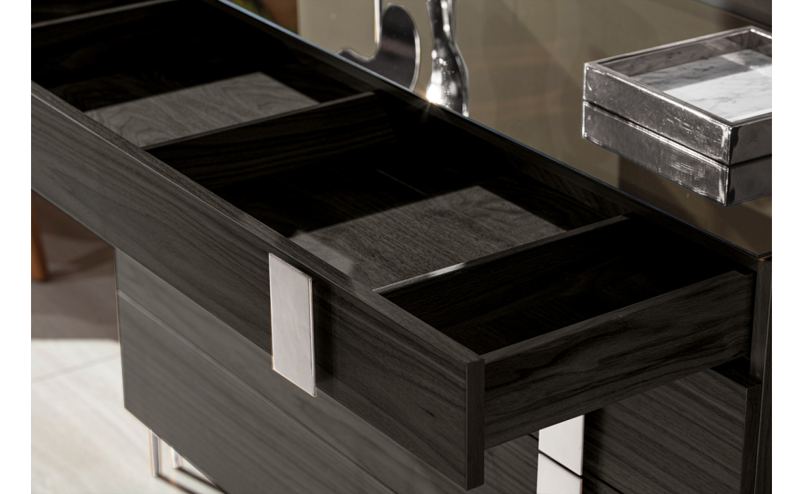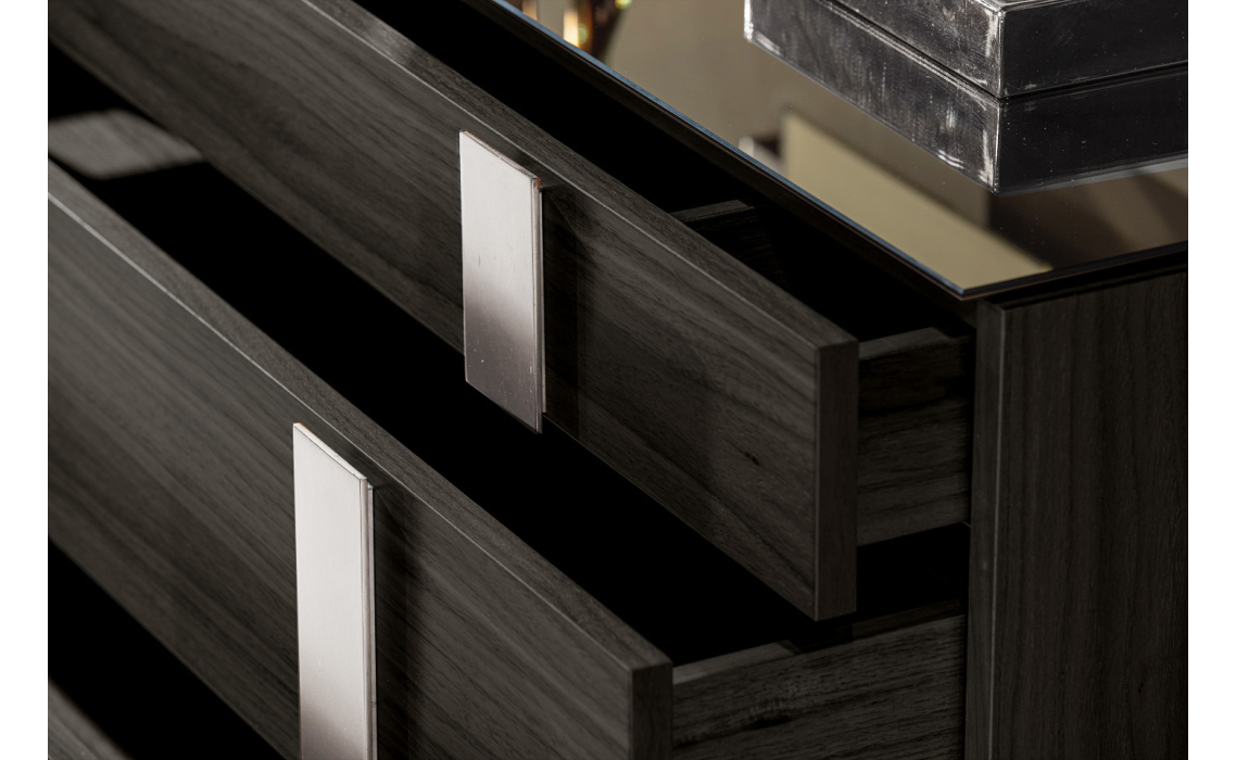 Комод INKA изысканно подчеркнет индивидуальность интерьера. Сверкающие медные ножки и ручки, характерные для коллекции, придают пространству элегантность. Корпус, выполненный из натурального дерева, наделяет модель природной эстетикой. Выдвижные ящики разной глубины обеспечивают достаточно места для хранения.