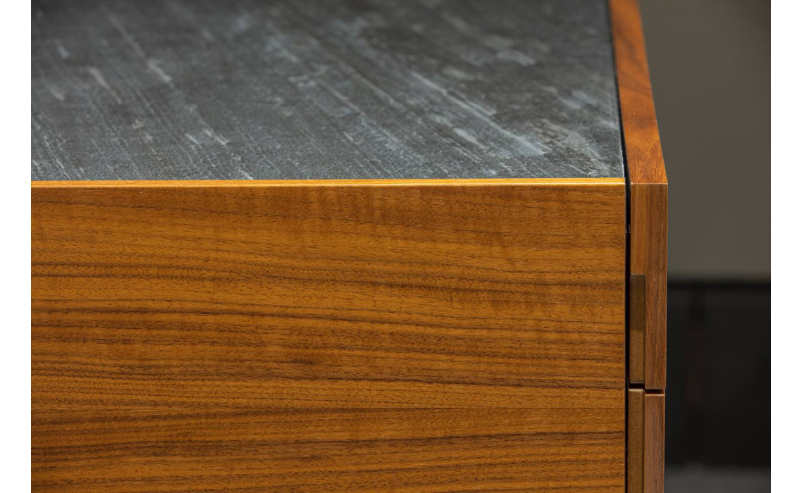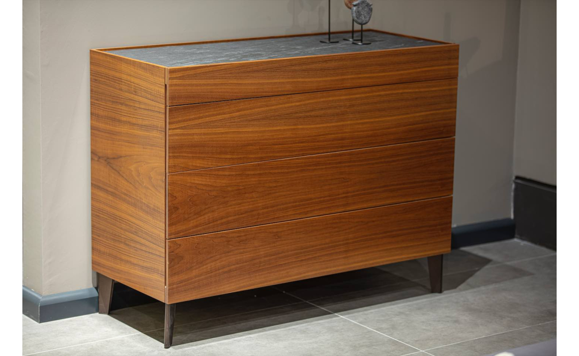 Комод LAV отражает философию коллекции. Модель гармонично сочетает натуральные материалы, привнося в спальню природы ноты и очаровывая столешницей из сланца. Облик изделия дополняется угловатыми гладкими ножками.