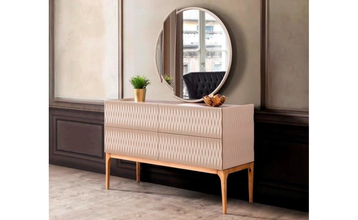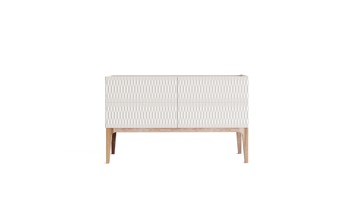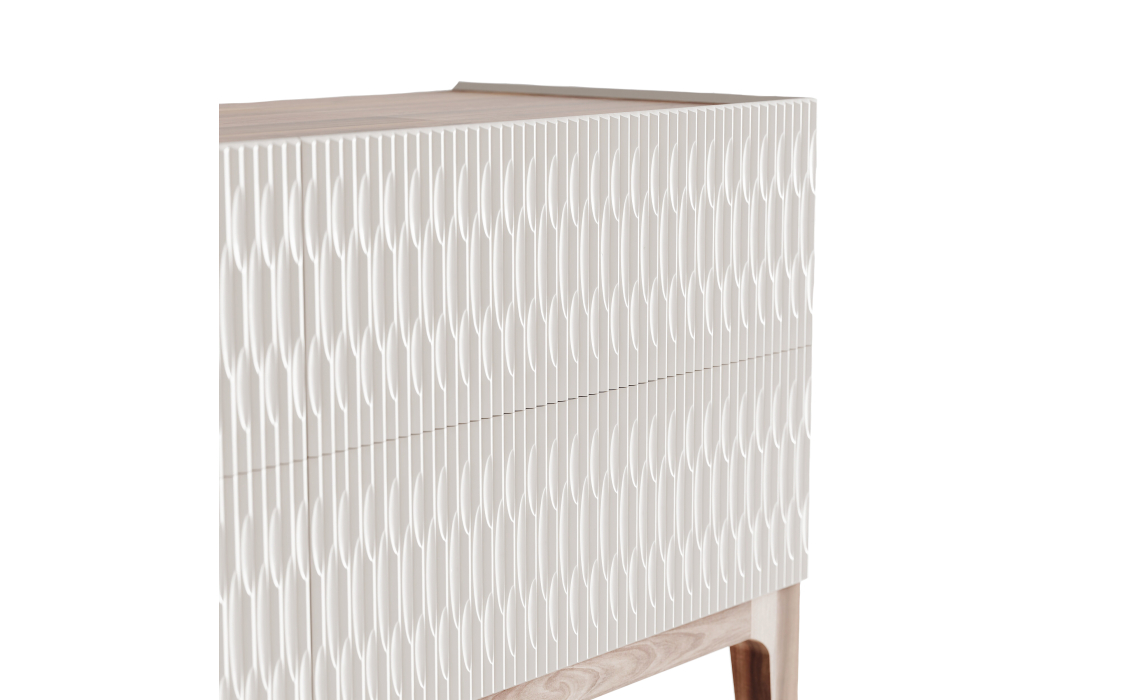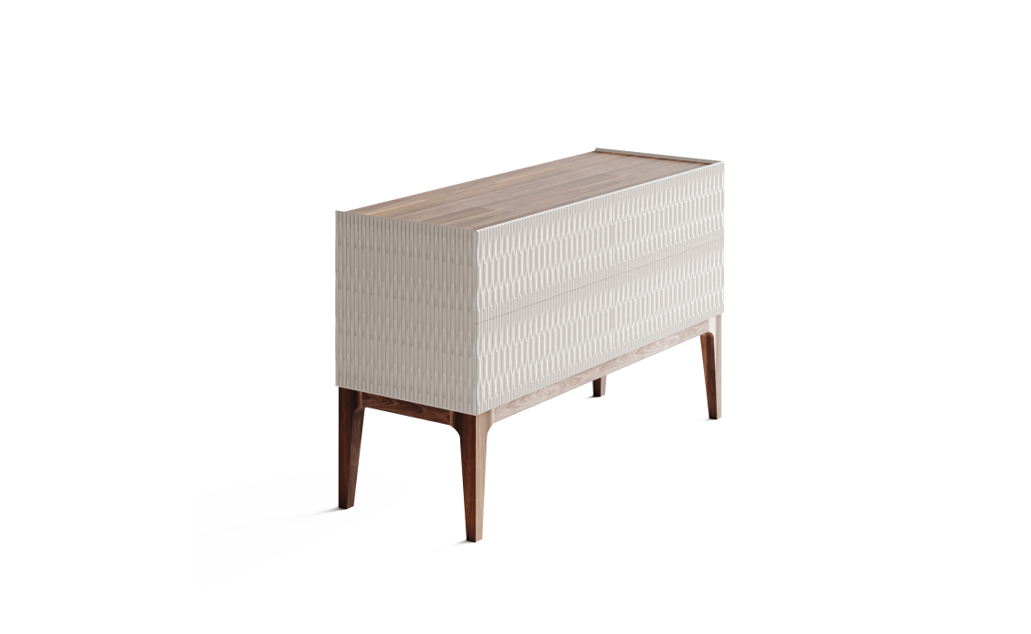 Комод LUSSO выделяется исключительным качеством используемых материалов и нежными пастельными тонами. Его оригинальный рельефный фасад сразу привлекает взгляд.