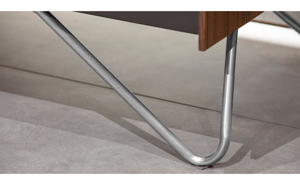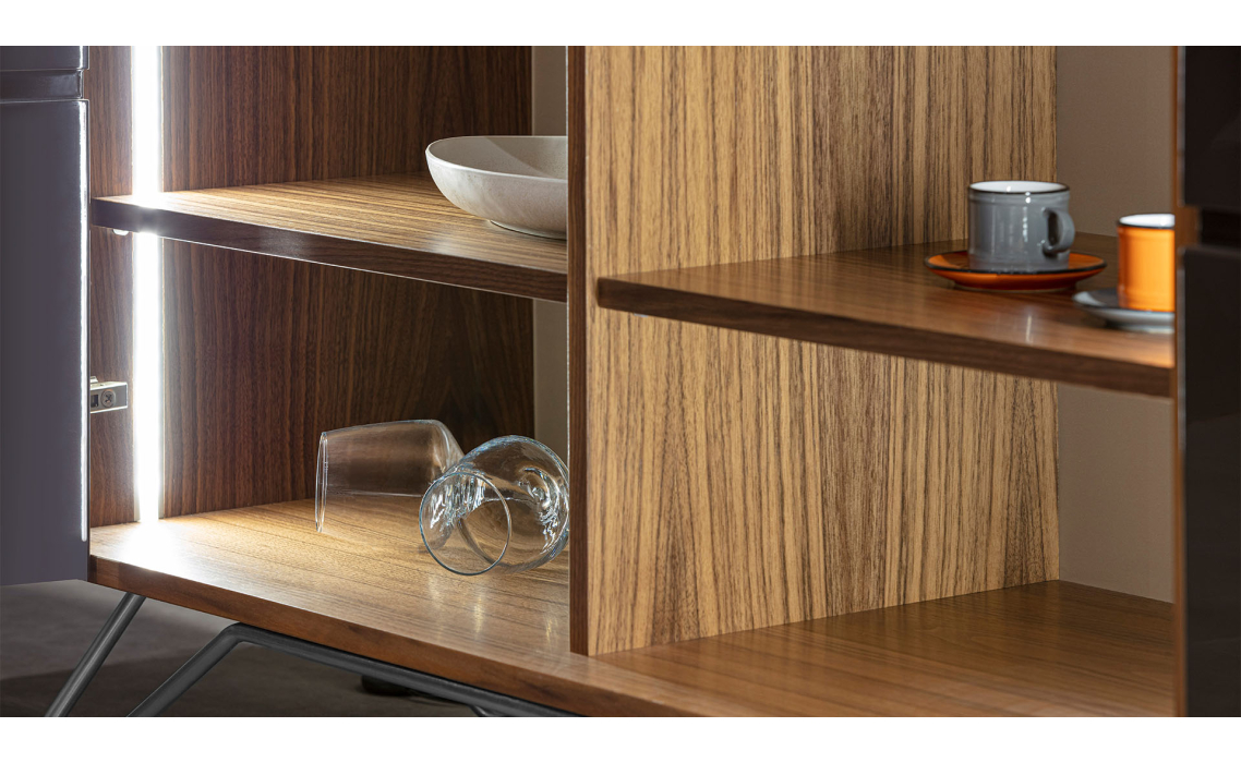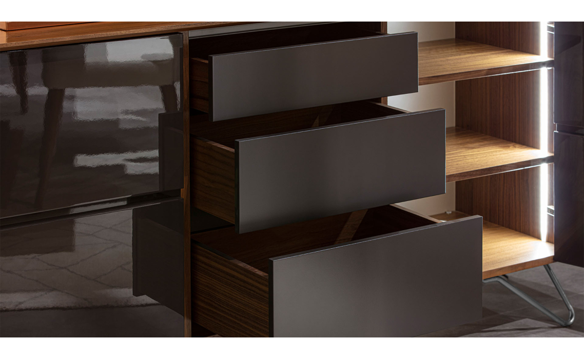 Удобные ящики обеспечивают достаточно места для хранения всех необходимых предметов. Глянцевые фасады вкупе с натуральным деревом привносят в пространство ноты роскоши и уюта. Металлические ножки оригинальной формы подчеркивают уникальность дизайна. Каждый элемент — отражение выдающегося мастерства и стремления к совершенству.
