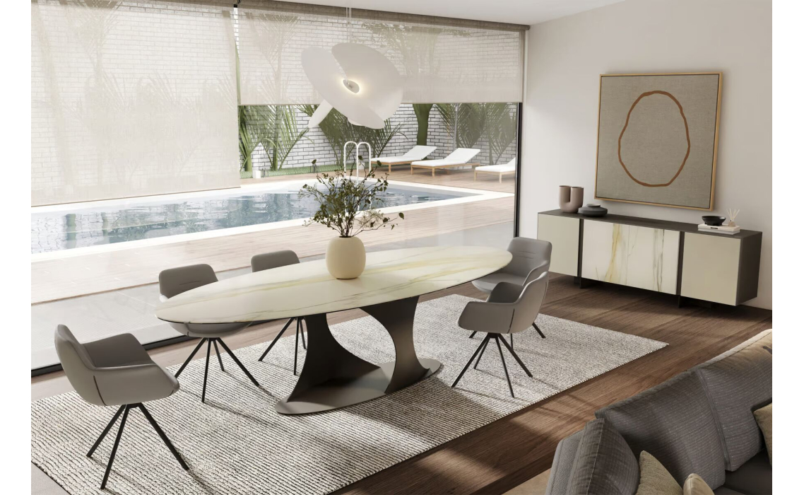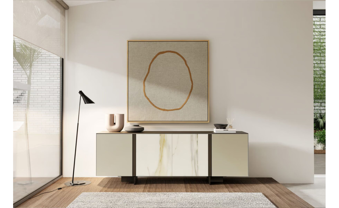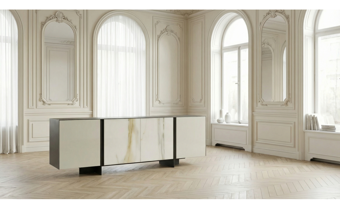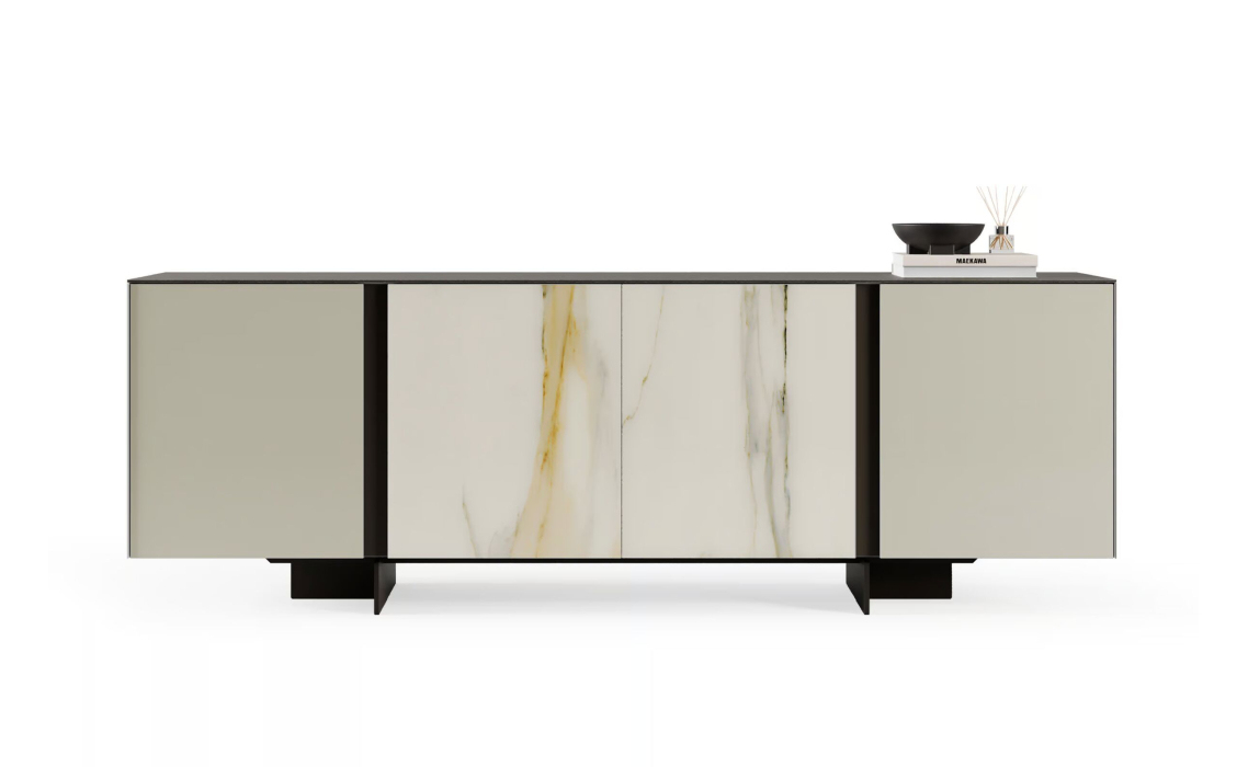 Комод PRETORIA SIDEBOARD MATT GLASS DBR GLASS CALACATTA GOLD 240X45X73 СМ.