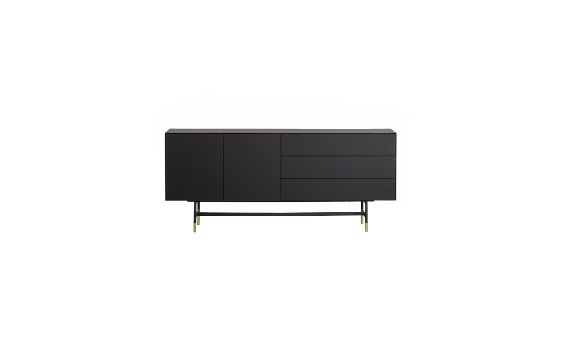 Комод бренда Norr Mobler — элитарный стиль, воплощенный в лаконичных формах. Притягательный черный оттенок, гладкий матовый фасад и стеклянная столешница создают гармонию минимализма и роскоши. Дизайнерские ножки с металлическими наконечниками в золотом цвете добавляют элегантности, завершая утонченный облик комода.