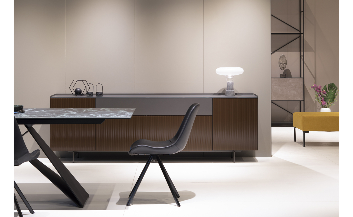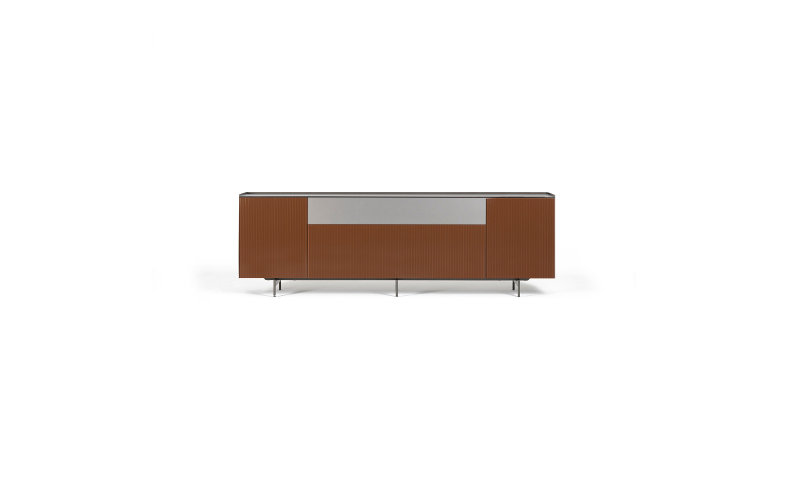 Комод бренда Norr Mobler — элитарный стиль, воплощенный в лаконичных формах. Модель обладает сдержанным коричневым оттенком. Фасад сочетает рельефные и гладкие поверхности, создавая игру фактур.
