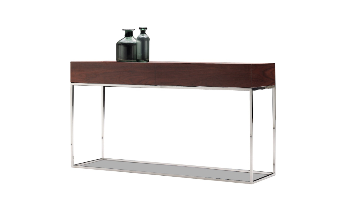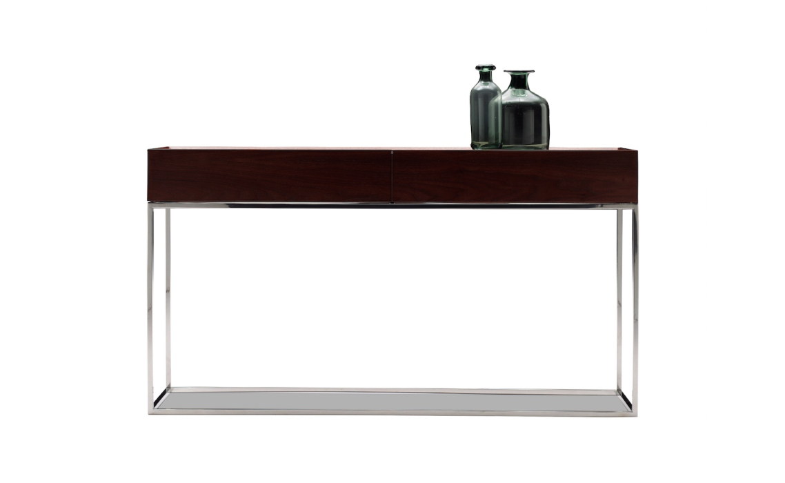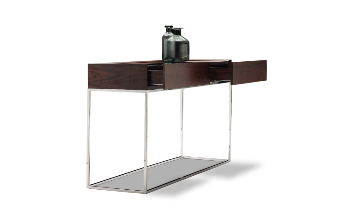 Консоль напольная NEWS CONSOLE TABLE Natural walnut veneer MIRROR BRONZE - 138X40X77 СМ.