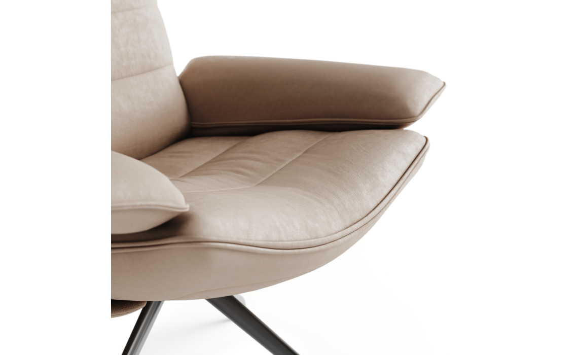 Подлокотники — стильный акцент, позволяющий удобно расположиться в кресле. В качестве наполнителя выступает инновационный материал, эффективно поддерживающий тело во время отдыха или работы. Надежные механизмы, разработанные в Германии, обеспечивают максимальный комфорт и удобство во время эксплуатации кресла.