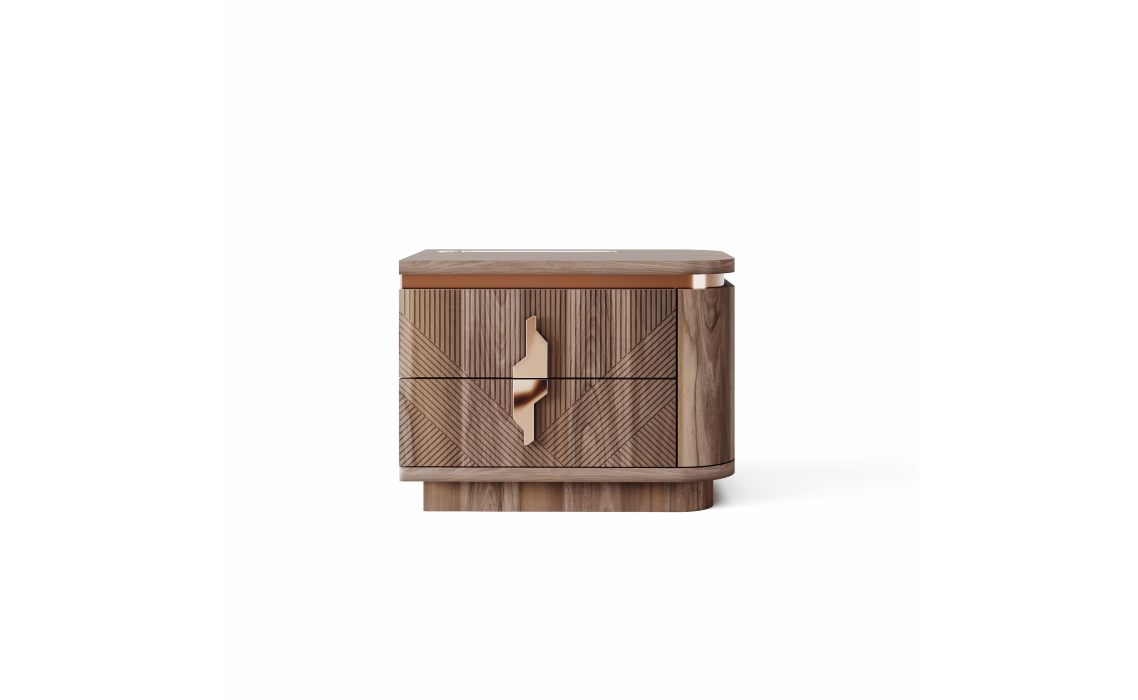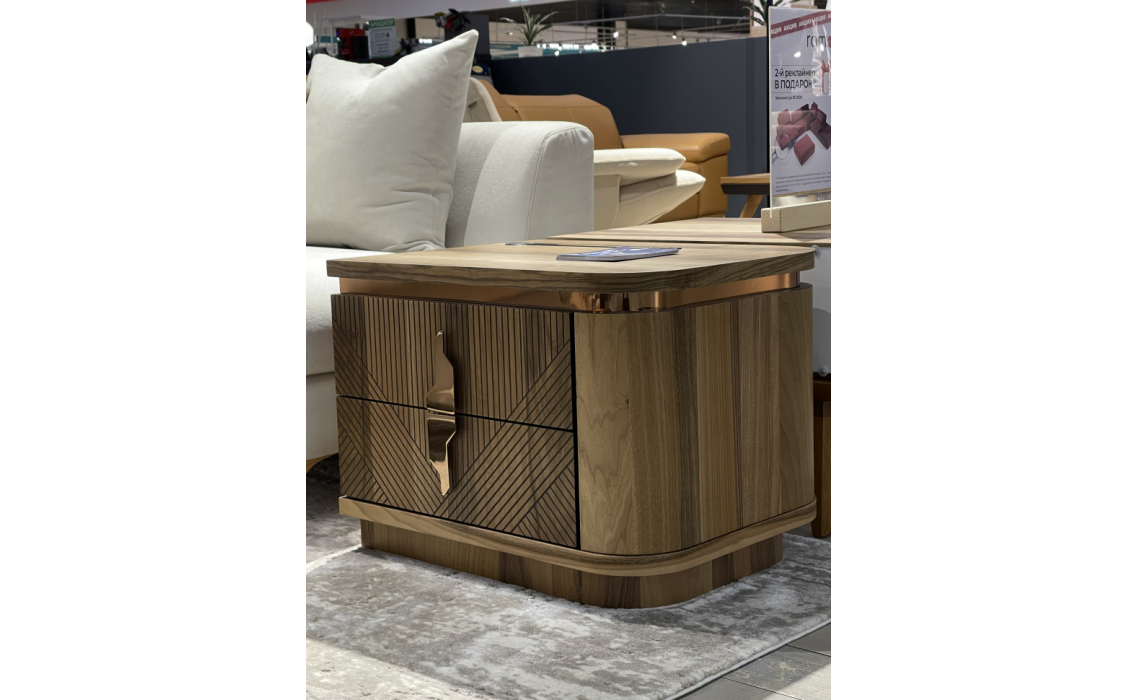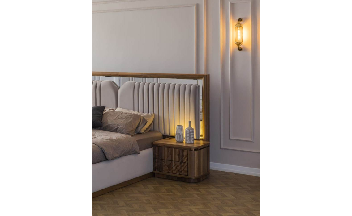 Прикроватная тумба RONDA эффектно украсит интерьер. Элегантная тумба оснащена подсветкой, которая создает уютную атмосферу. Модель обладает уникальным стилем благодаря мягкой округлой форме и рифленому фасаду из дерева.
