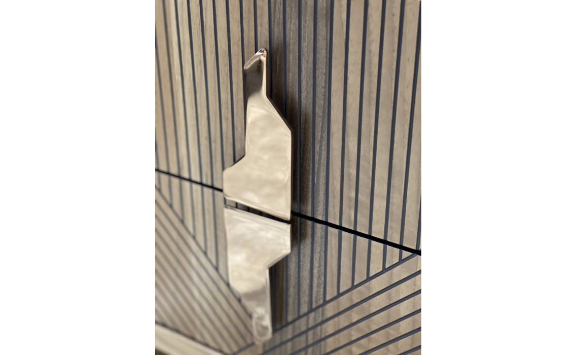 Корпус тумбы выполнен из натурального шпона, который подчеркивает естественную текстуру и добавляет изысканности. Деревянные ножки поддерживают экологичный образ изделия. Золотые элементы придают тумбе эксклюзивный и роскошный вид.