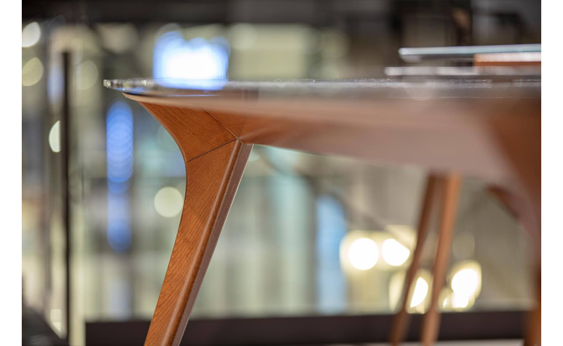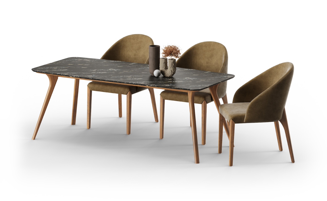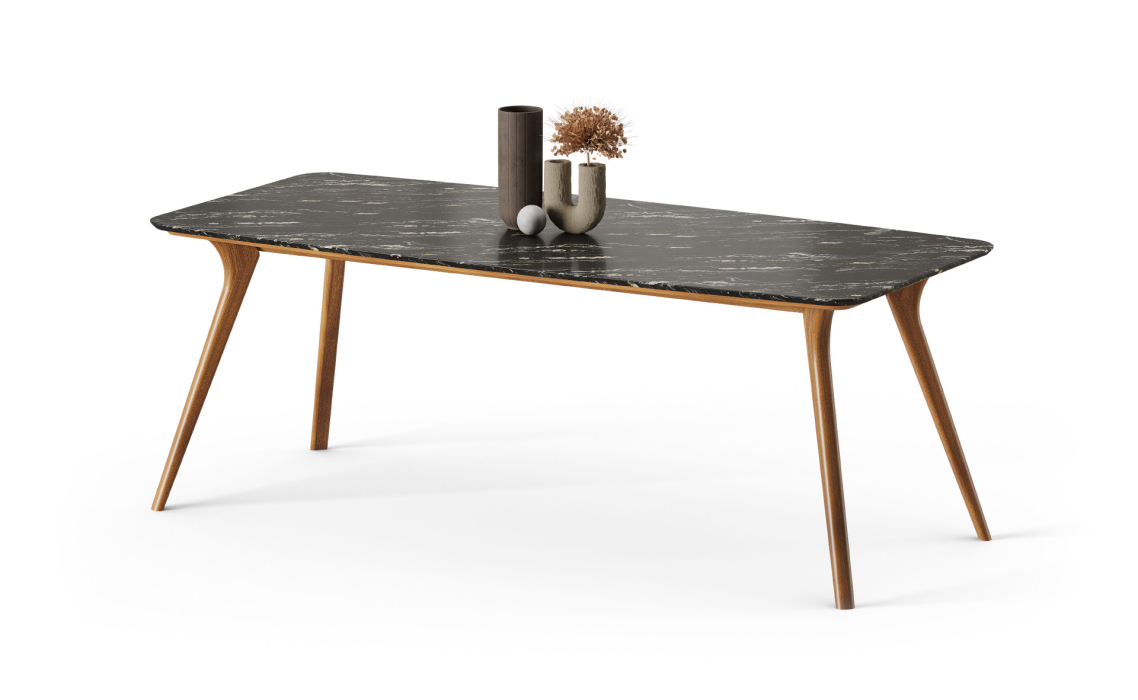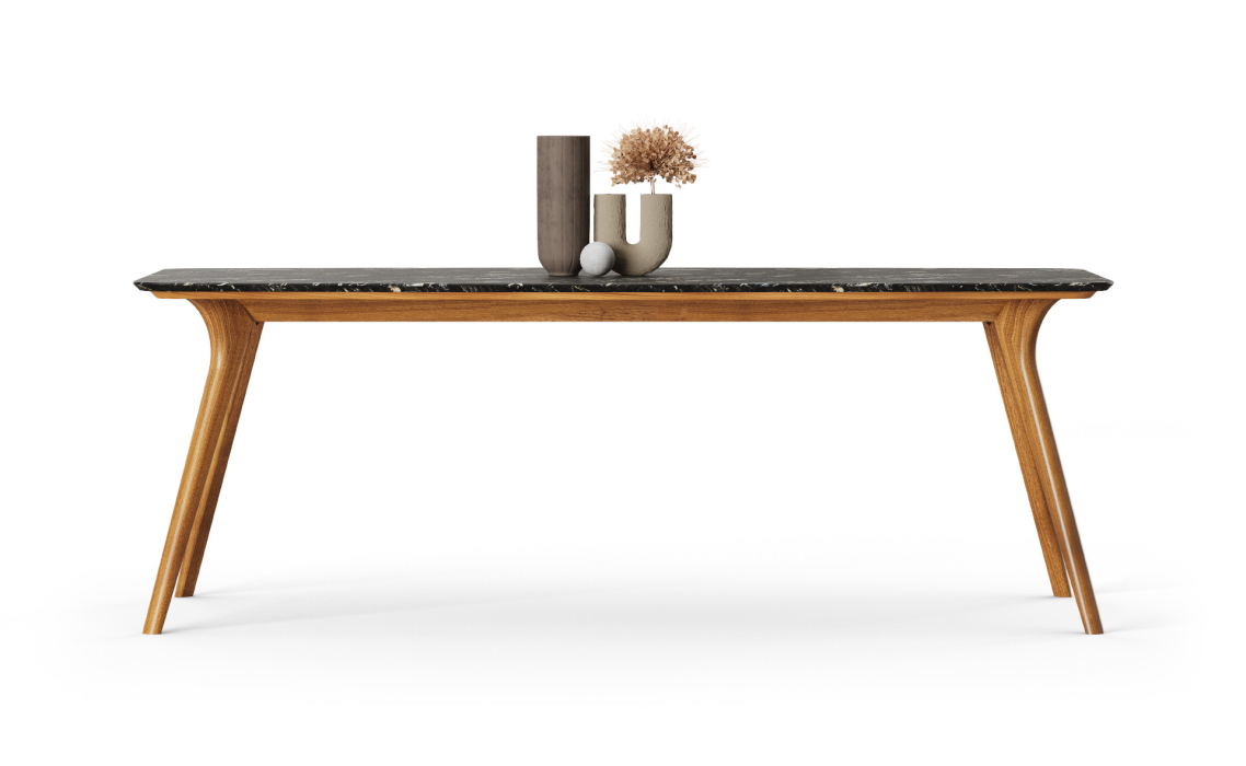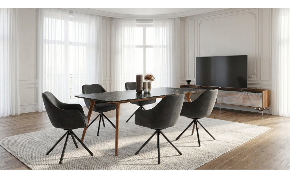 Позвольте себе насладиться гармоничным сочетанием материалов — благородного дерева и изысканного мрамора, воплощенных в элегантном дизайне обеденного стола 68 DINING TABLE.
