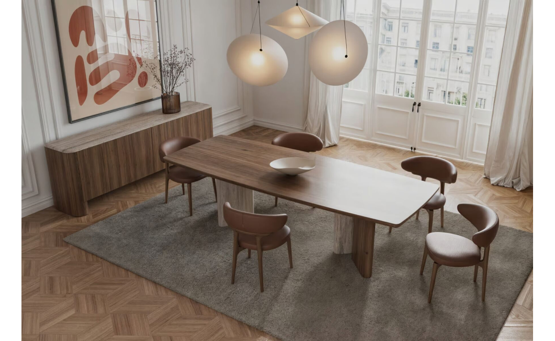 Стол обеденный AGATE DINING TABLE BROWN STONE MARBLE AMERICAN WALNUT 275X103X75 СМ.
