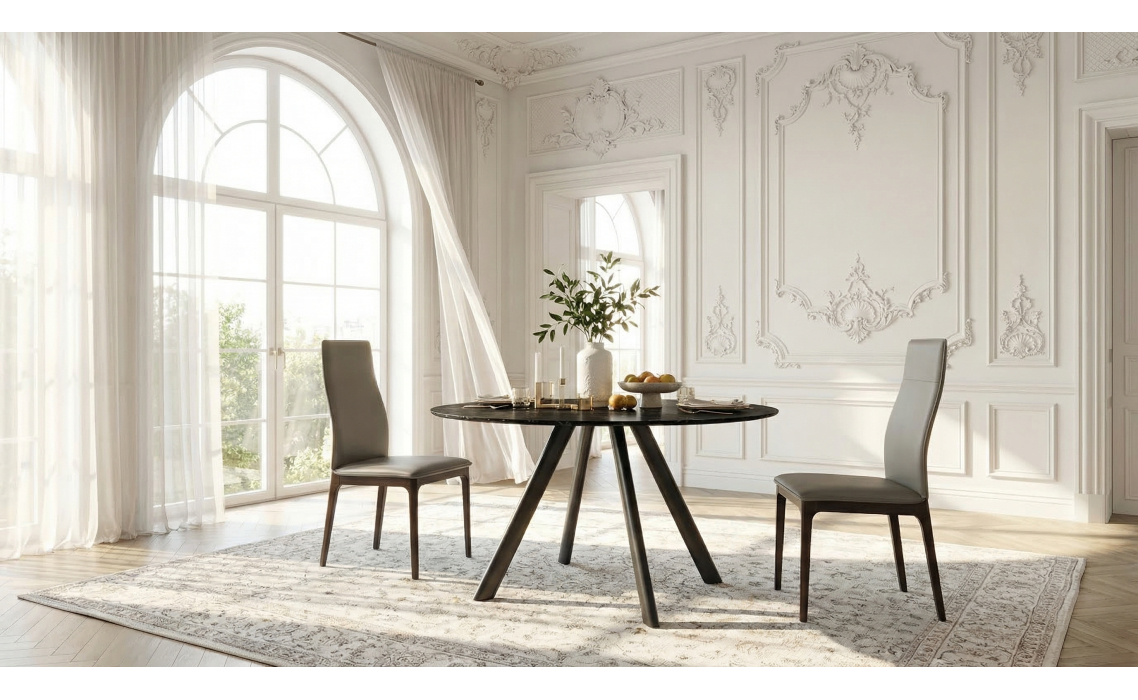 Стол обеденный AVANTI DINING TABLE BLACK PIANO MARMO NERO OPACO 135X87X76 СМ.