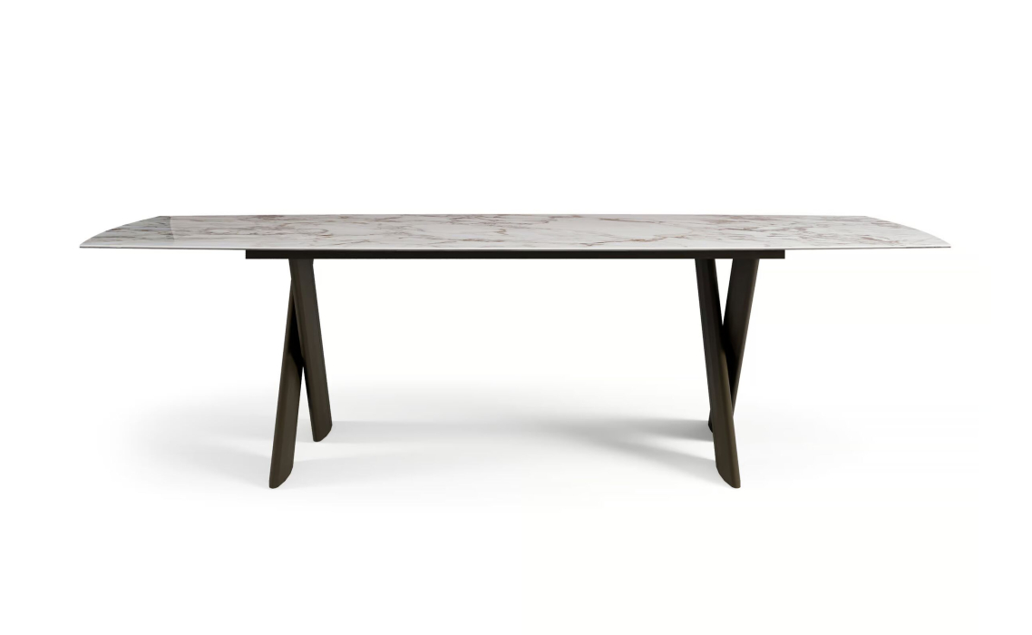 Стол обеденный CROSS DINING TABLE BROWN GLOSSY GRAY MARBLE 200X100X75 СМ.