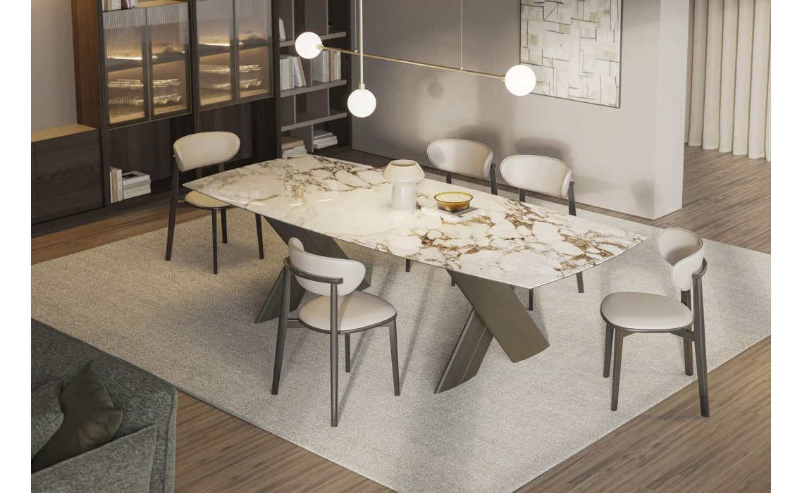 Стол обеденный CROSS DINING TABLE BROWN GLOSSY GRAY MARBLE 240X100X75 СМ.