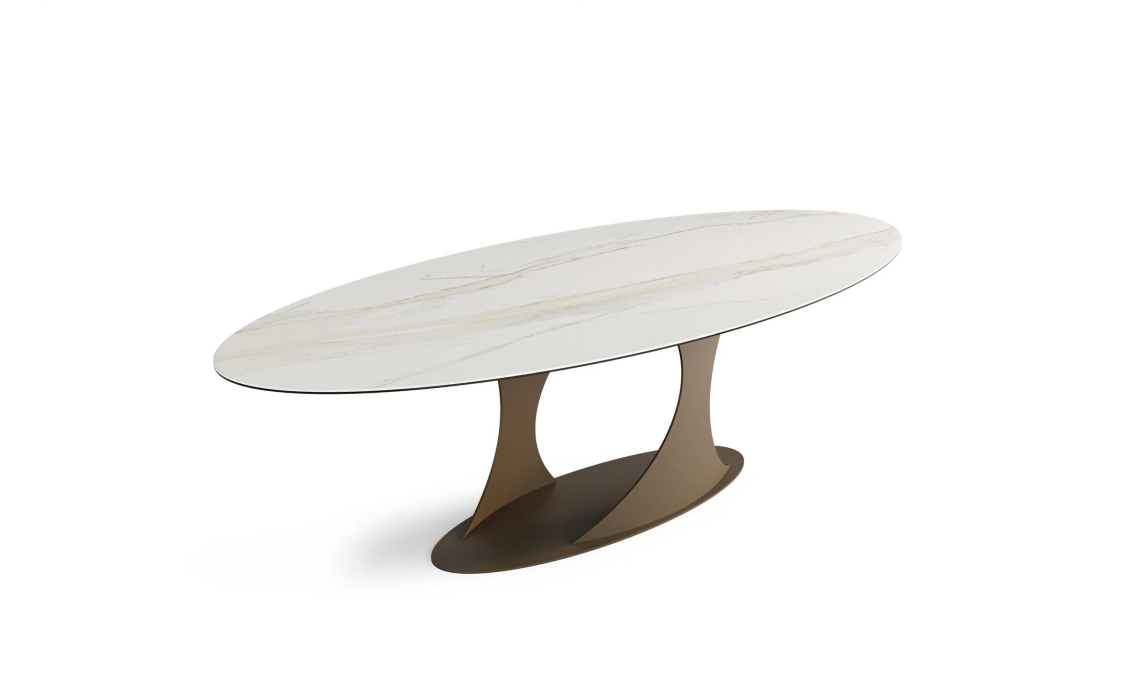 Изюминка стола Loop — изысканное подстолье с плавными линиями. Керамогранит обладает исключительной стойкостью к повреждениям, высоким температурам и влаге — ваш стол сохранит безупречный вид даже после многих лет активного использования.