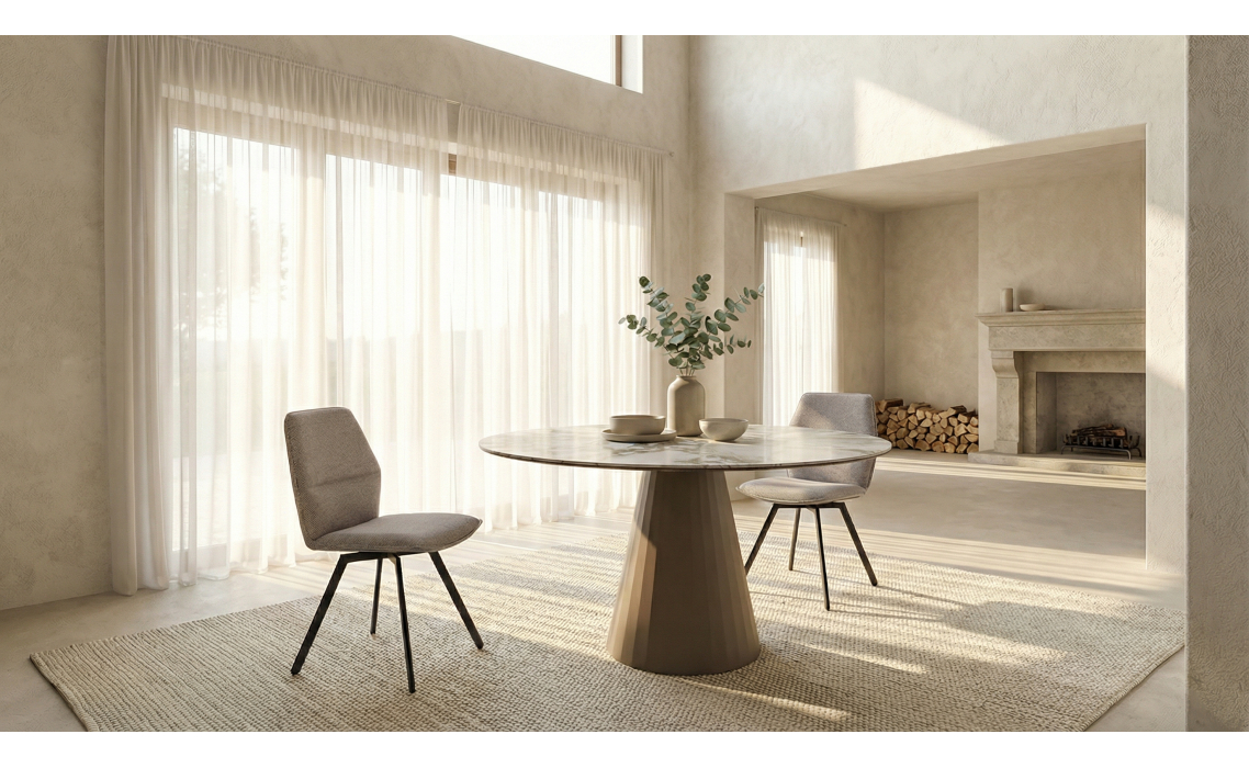 Мягкий, нейтральный цвет привносит в обеденную зону ощущение тепла. Обеденный стол MONACO легко сочетается с различными цветами и материалами, что делает его универсальным выбором для любого стиля интерьера.