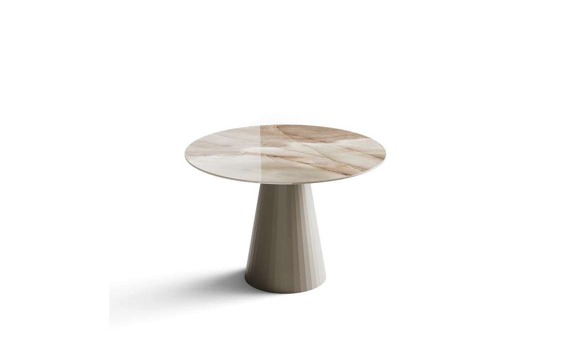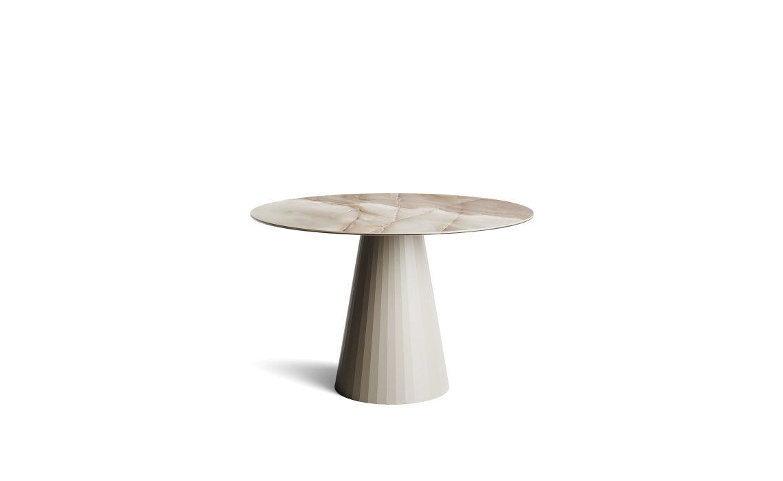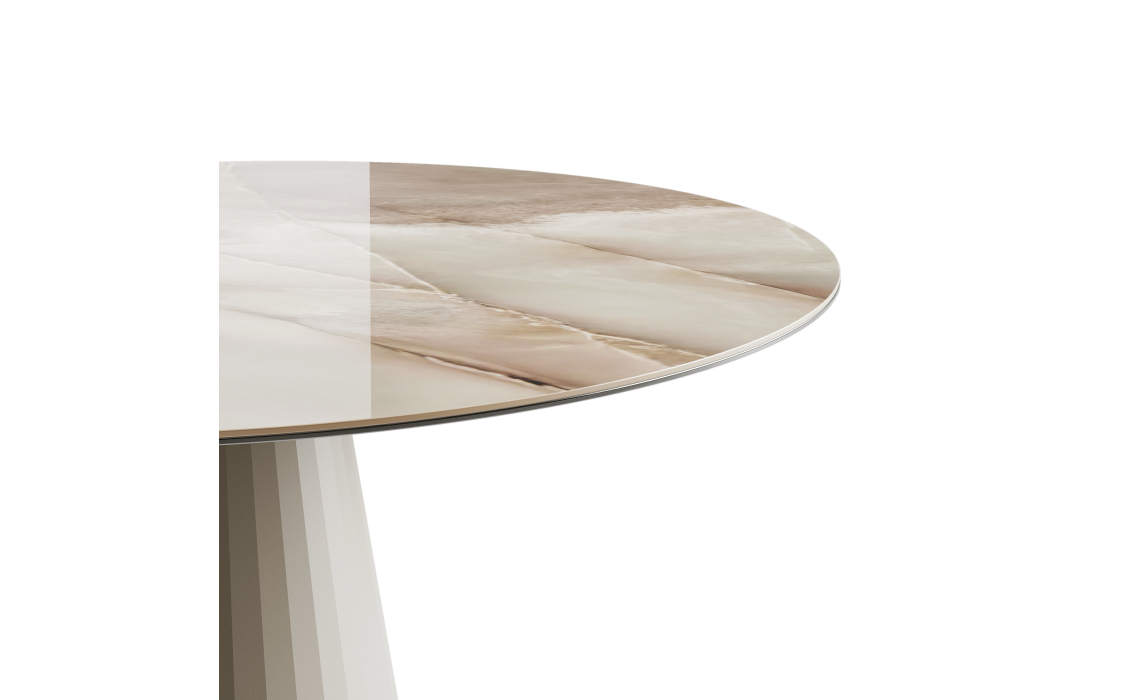 Стильный обеденный стол MONACO станет ярким акцентом в пространстве, создавая уютную атмосферу. Прочная глянцевая столешница из керамогранита обеспечивает долговечность и устойчивость к повреждениям. Металлическая опора придает модели современный облик.