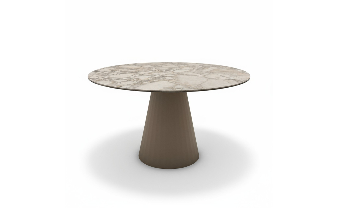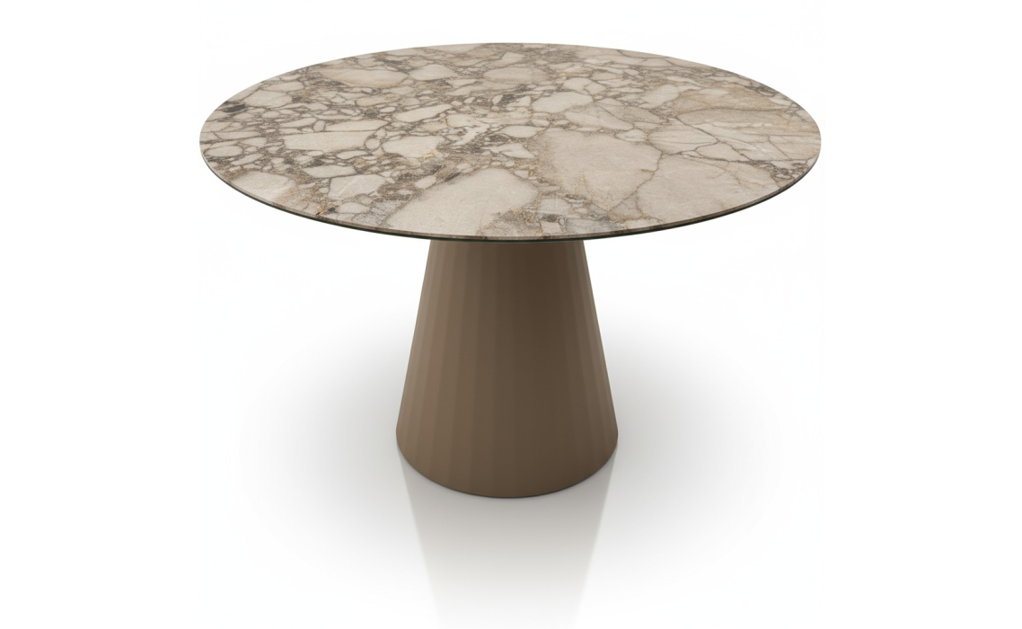 Стильный обеденный стол MONACO станет ярким акцентом в пространстве, создавая уютную атмосферу. Прочная глянцевая столешница из керамогранита обеспечивает долговечность и устойчивость к повреждениям. Металлическая опора придает модели современный облик.