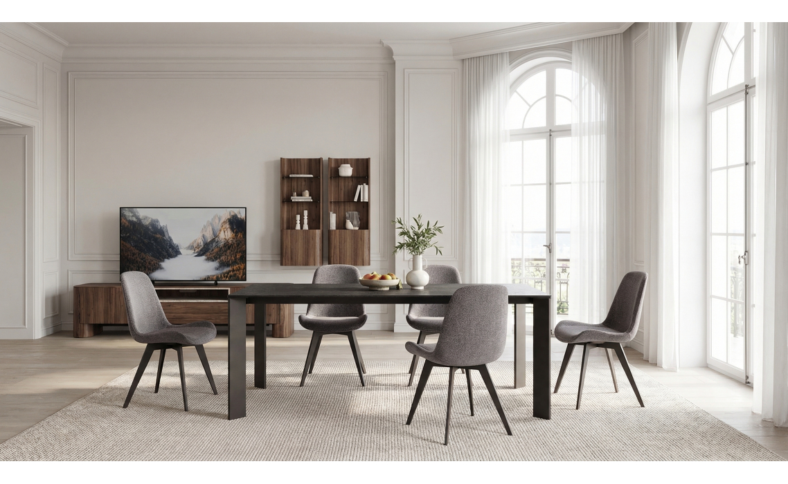 Цвет передает атмосфере настроение уверенности и спокойствия. Стол VERTEX достойно дополнит обеденную зону.