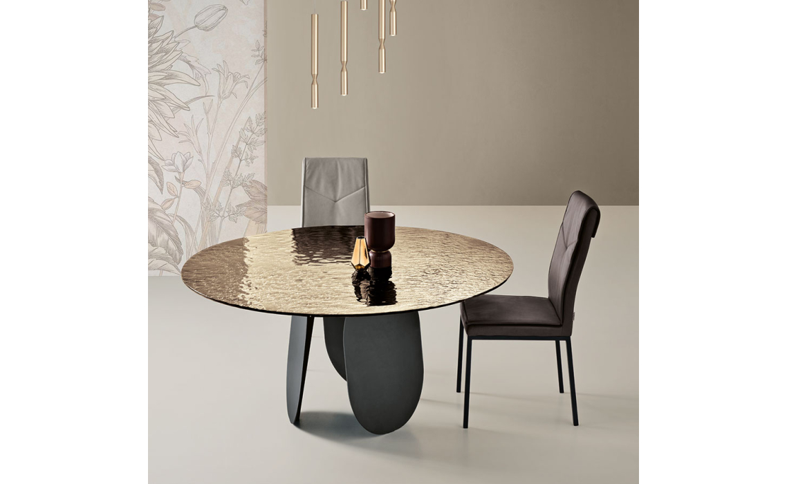 Круглый обеденный стол Polly — олицетворение роскоши и утонченности. Столешница из закаленного стекла наделяет модель особым шармом. Столы с рельефной столешницей не только выглядят великолепно, но и обладают высокой прочностью. Подстолье стола состоит из четырех овальных опор, выполненных из металла.